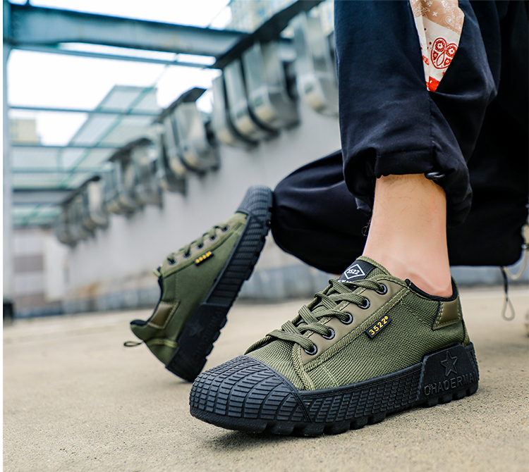 건설 현장에서 이주 노동자를위한 해방 신발 남성용 내마모성 미끄럼 방지 군사 훈련 신발 작업 탈취제 통기성 노동 보호 신발 캔버스 인스턴트 에너지스토어 가기