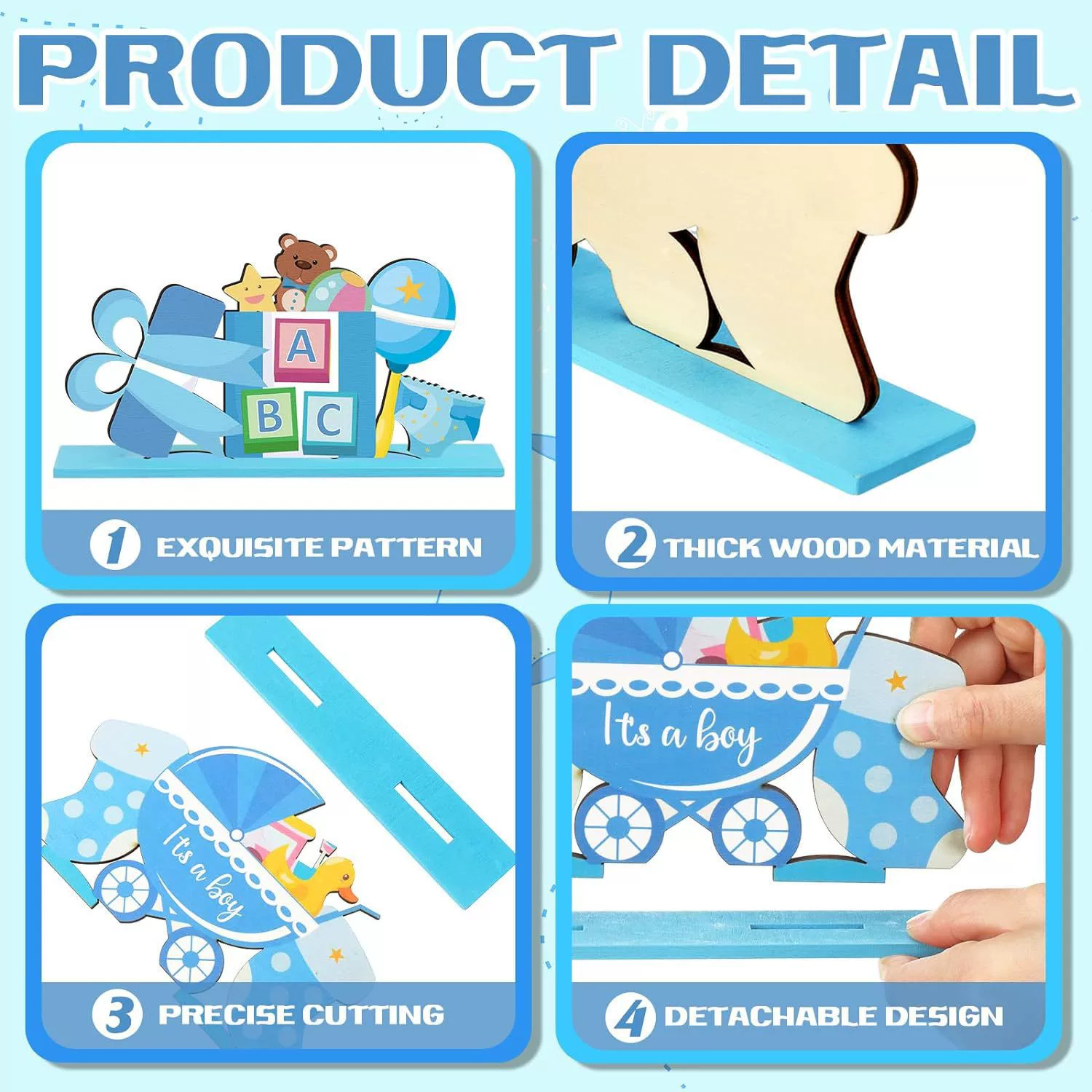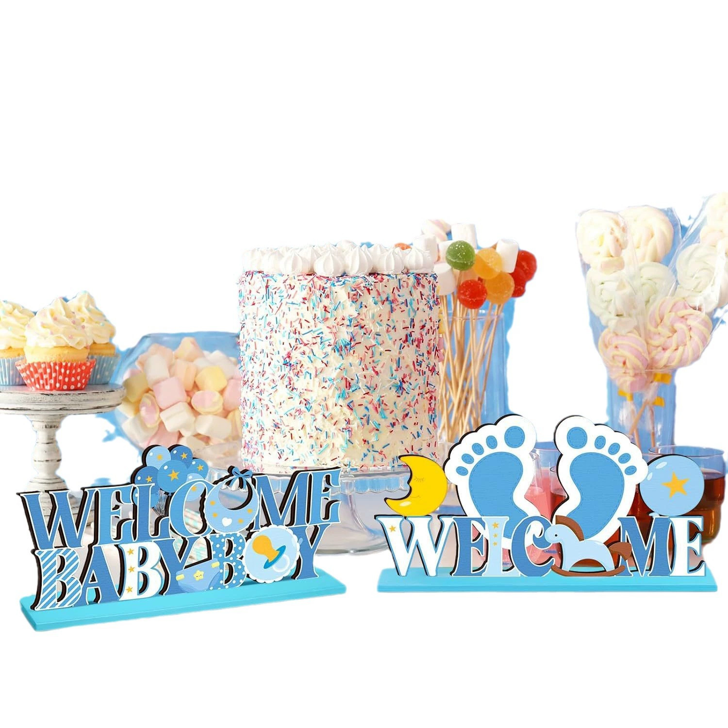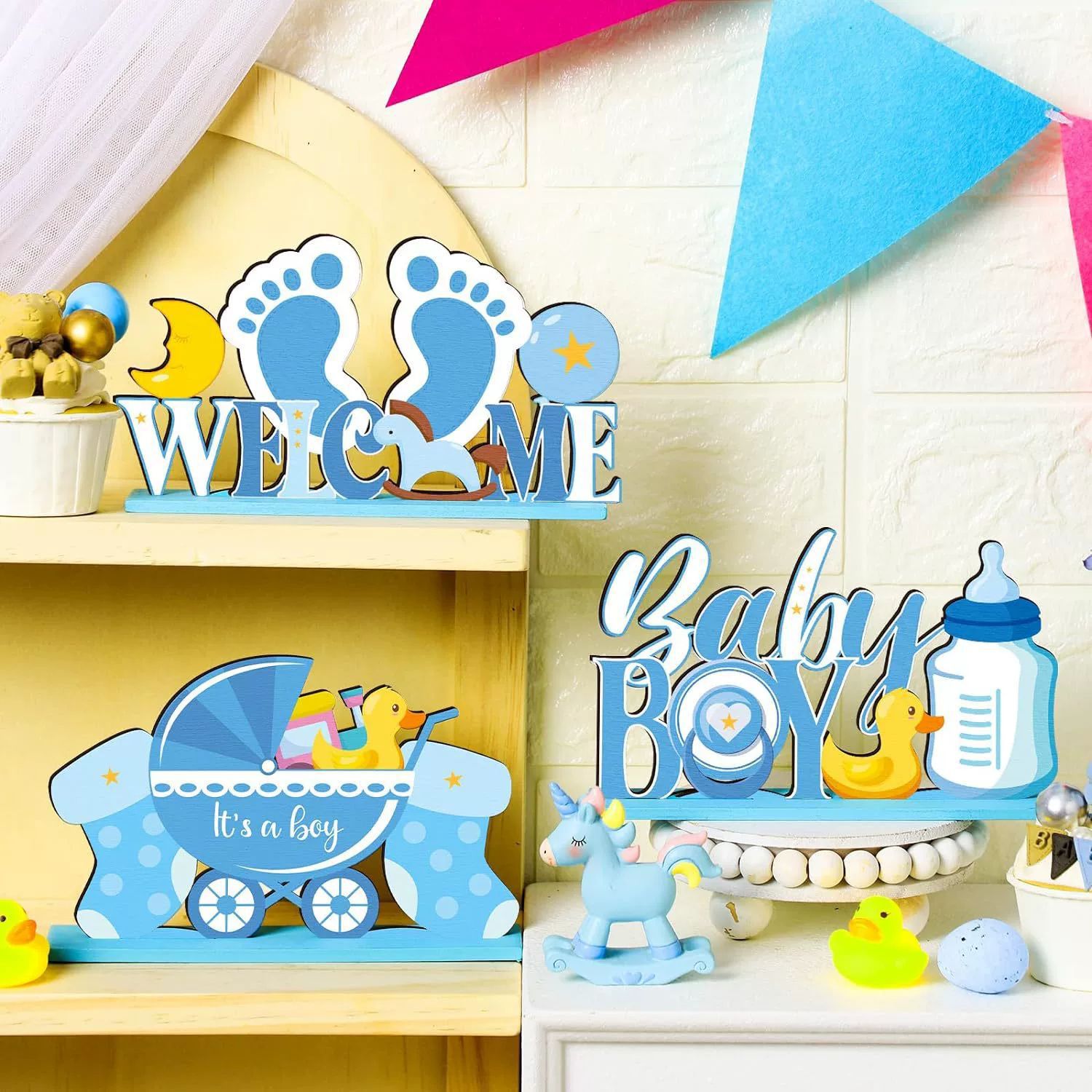 국경을 넘는 새로운 스타일의 블루 베이비 샤워 나무 테이블 장식품 It's a Boy 장식품스토어 가기