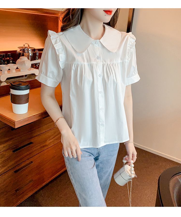 반팔 쉬폰 셔츠 느슨한 귀 테두리 인형 칼라 셔츠 2025 여름 새로운 스타일 우아한 작은 셔츠 연령 감소 여성스토어 가기