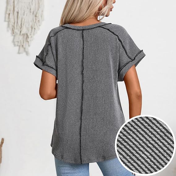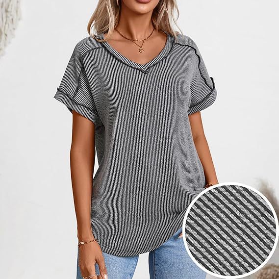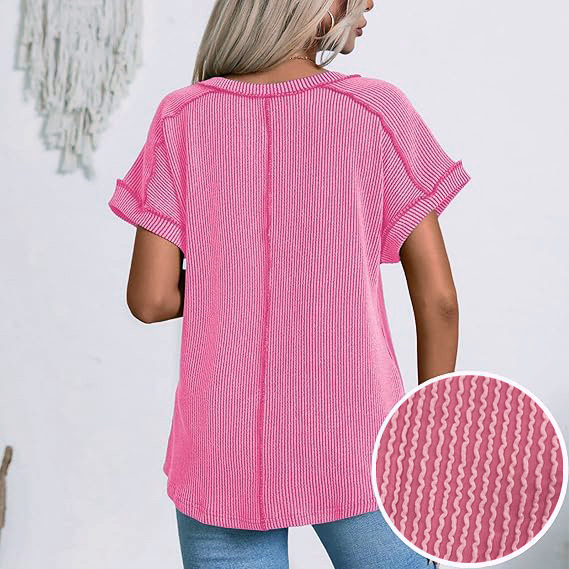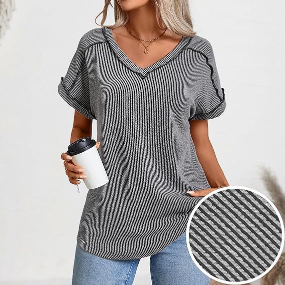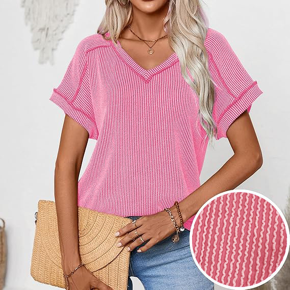2025 봄과 여름 국경 유럽 및 미국 아마존 새로운 패션 2 색 트위스트 코튼 및 리넨 폭탄 반팔 V 넥 티셔츠 여성용 탑