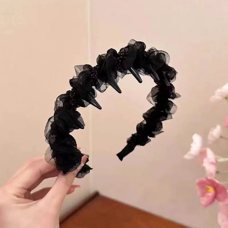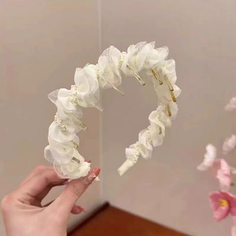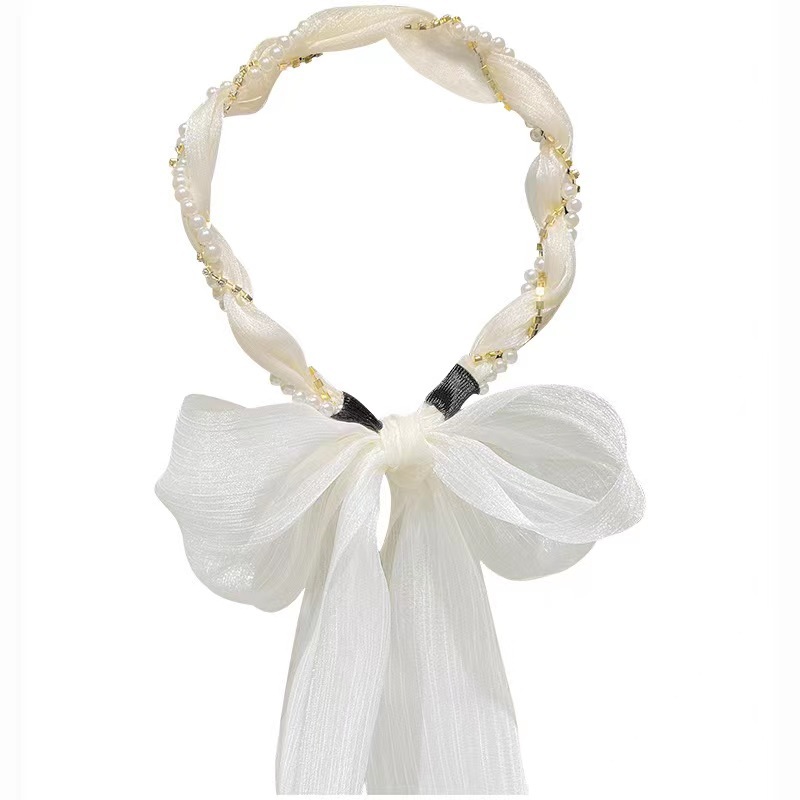 • 메쉬 기장 구슬 머리띠--오프화이트