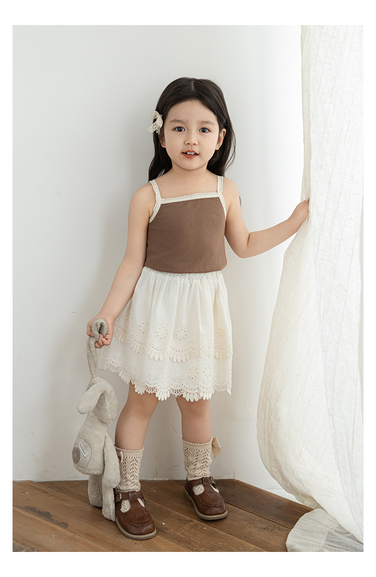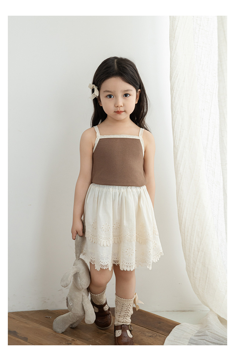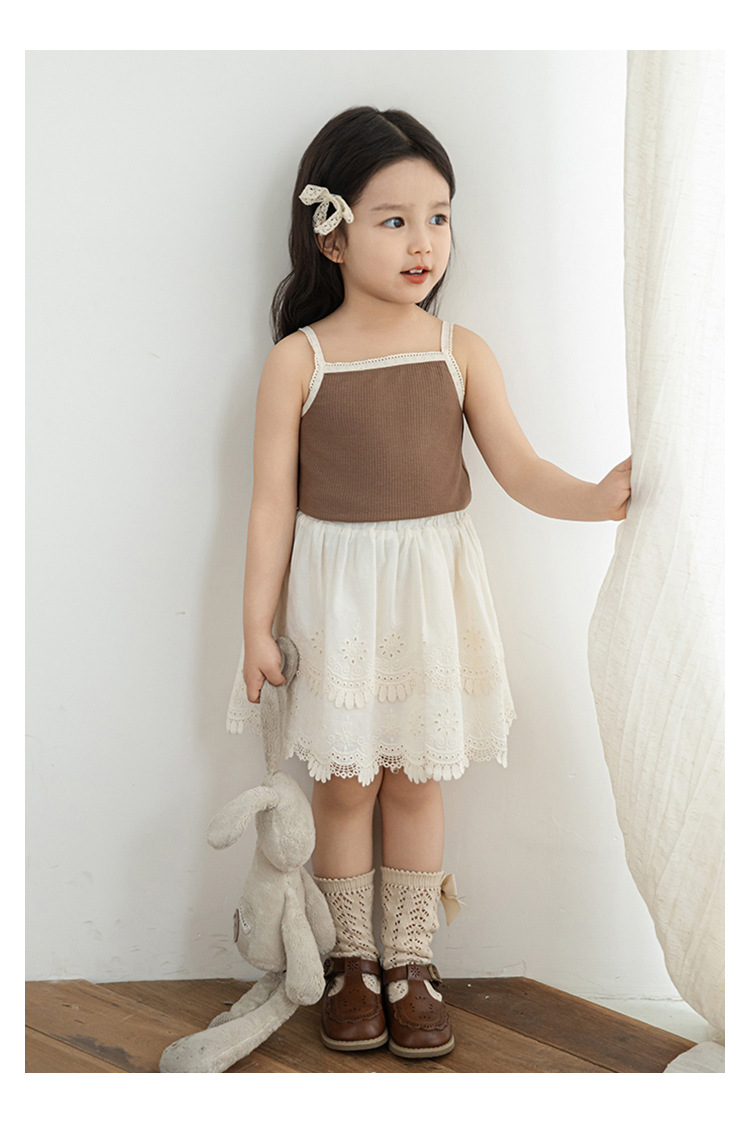 Wulibuyi 소녀 패션 레이스 자수 스커트 2025 여름 새로운 스타일 어린이 스타일 다목적 얇은 스커트