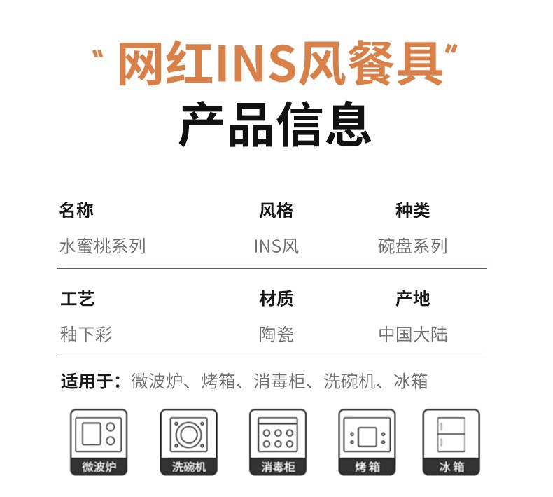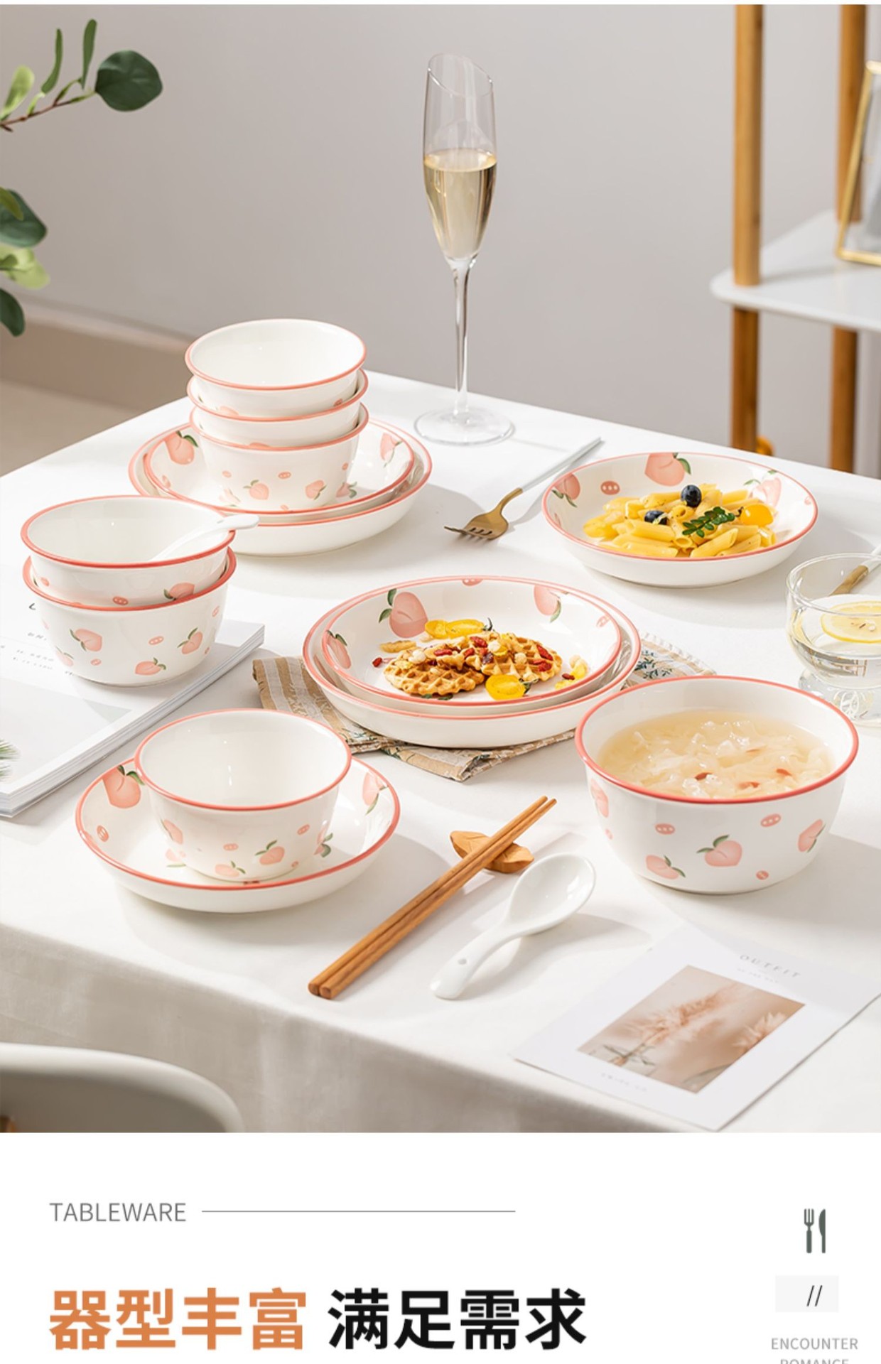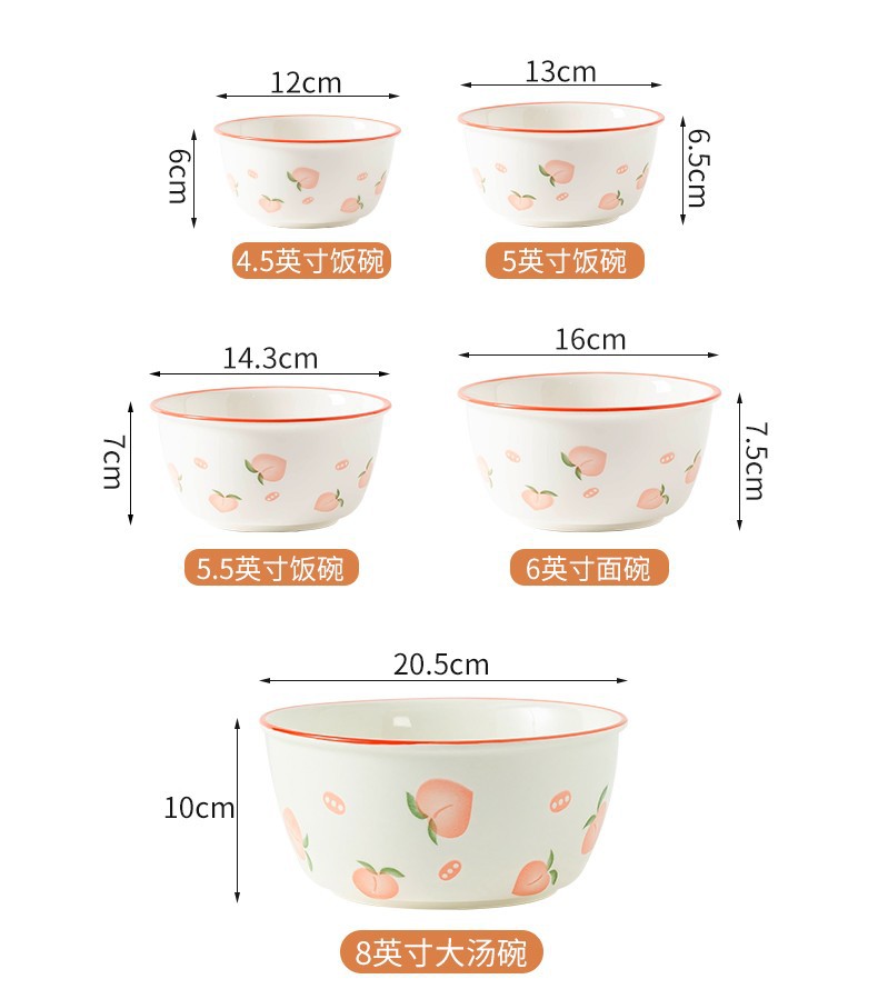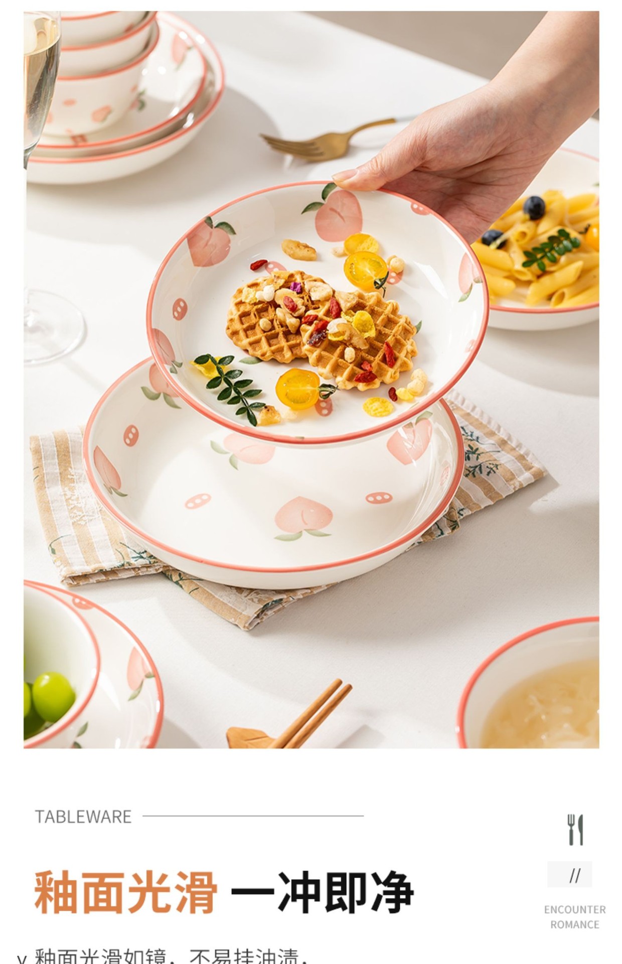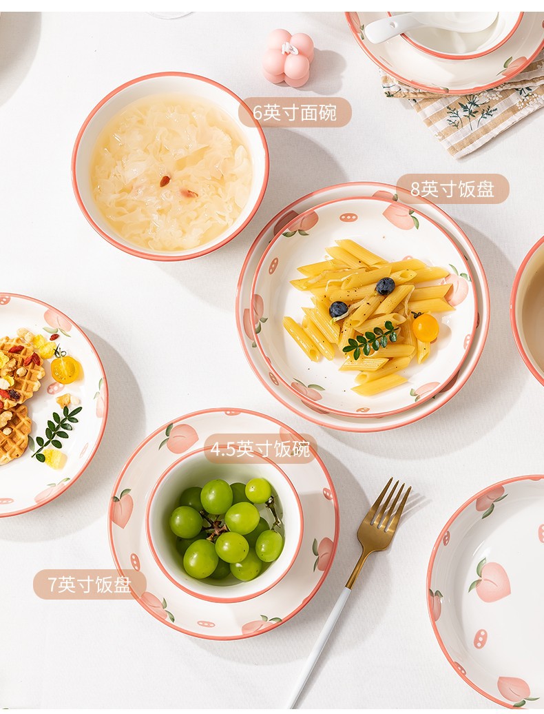 ✅가정용 인터넷 축하 복숭아 세라믹 그릇 접시 밥 그릇 밥 그릇 접시 수프 접시 유약 컬러 보울 플레이트 국수 그릇 수프 수프스토어 가기