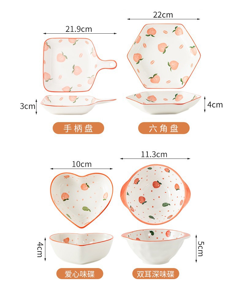 ✅가정용 인터넷 축하 복숭아 세라믹 그릇 접시 밥 그릇 밥 그릇 접시 수프 접시 유약 컬러 보울 플레이트 국수 그릇 수프 수프