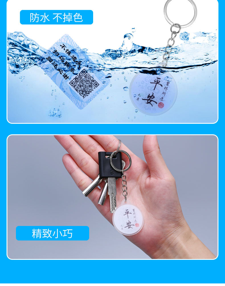 잃어버린 아크릴 자동차 키 체인 펜던트 키 링 학생 ID 손실 방지 스티커 태그