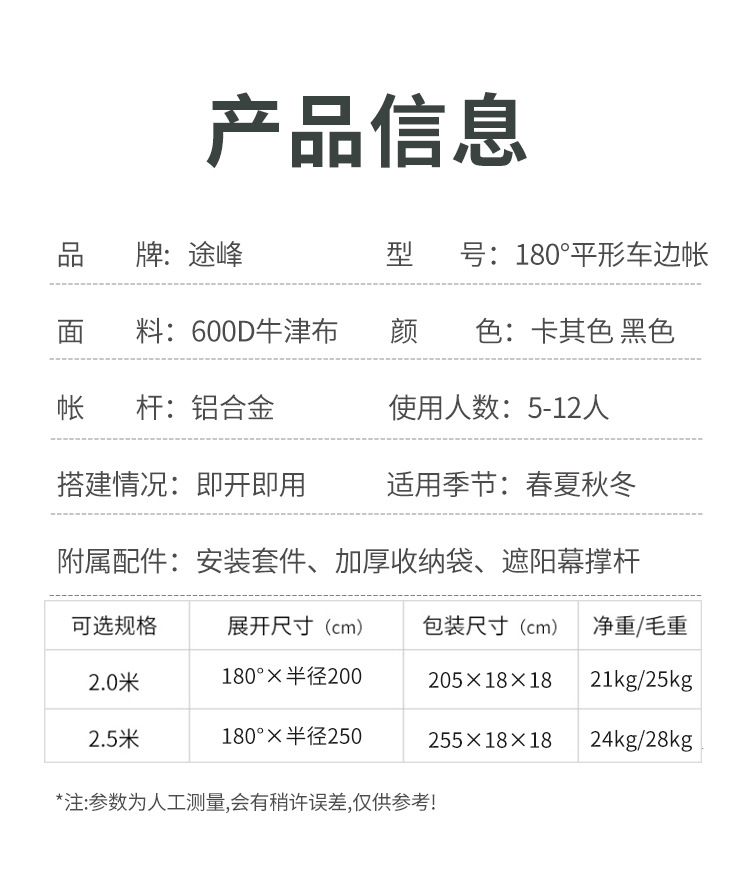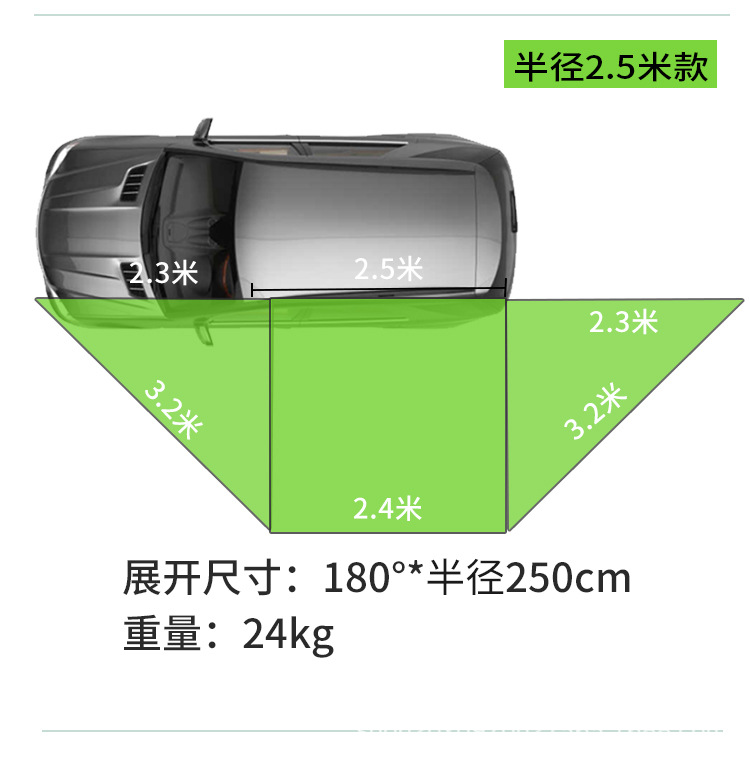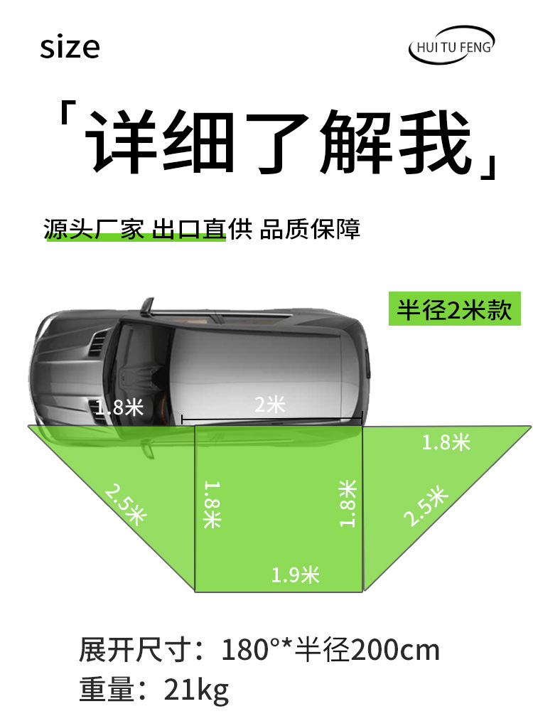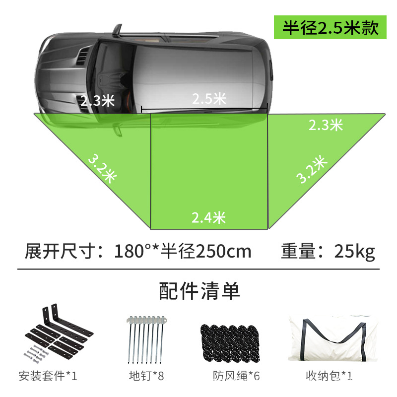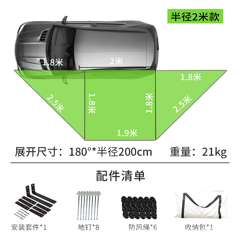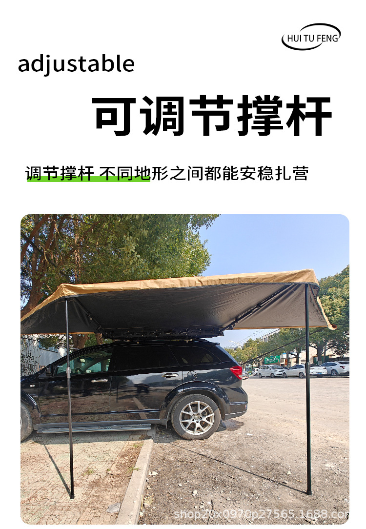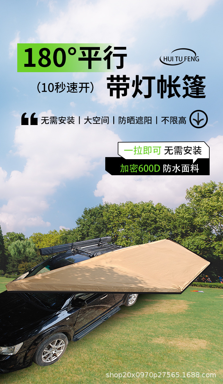 가벼운 차양 자동차 측면 텐트가있는 180 도 팬 모양의 빠른 오프닝 캐노피 캠핑 사이드 텐트 방비 선 스크린