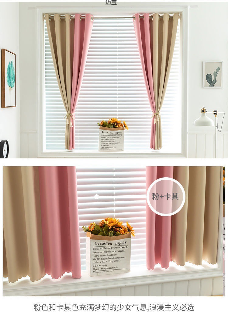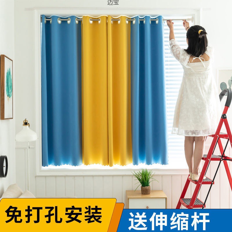 ✅블라인딩 천 펀치 프리 커튼 컬러 스플라이스 간단한 침실 베이 창 짧은 커튼 작은 창 텔레스코픽 로드