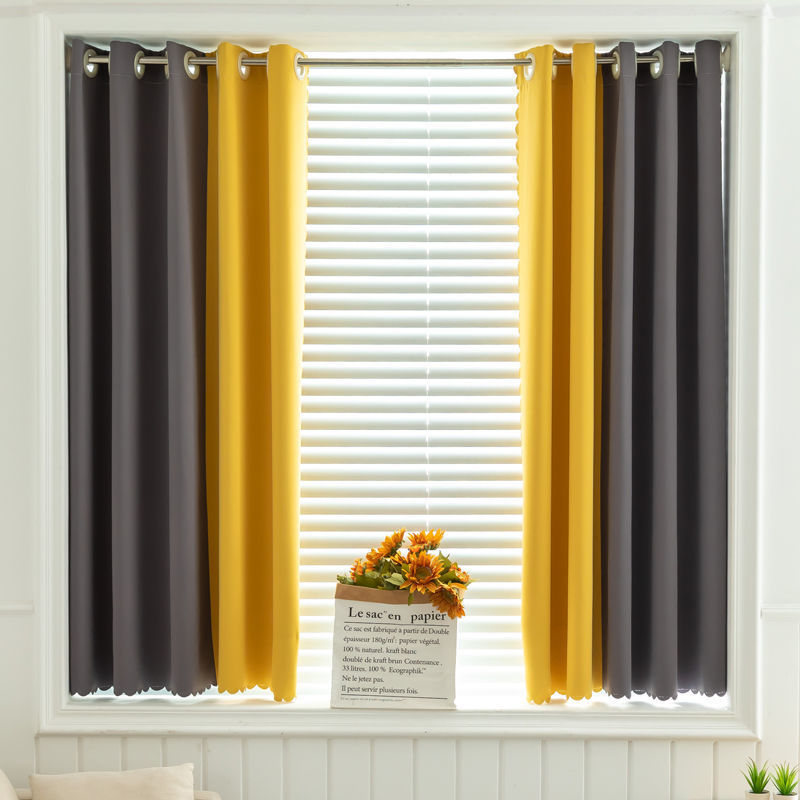 ✅블라인딩 천 펀치 프리 커튼 컬러 스플라이스 간단한 침실 베이 창 짧은 커튼 작은 창 텔레스코픽 로드스토어 가기