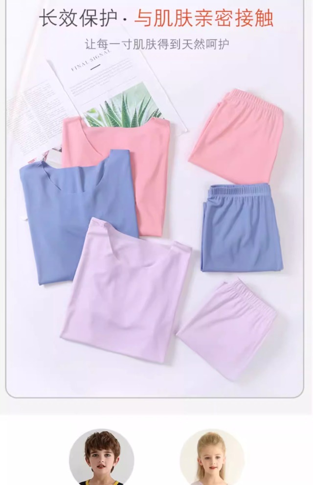 여아 모달 잠옷 세트, 부모-자식 가을 옷과 긴 바지, 어린이 얼음 실크 얇은 봄 여름 긴팔 속옷, 초박형스토어 가기