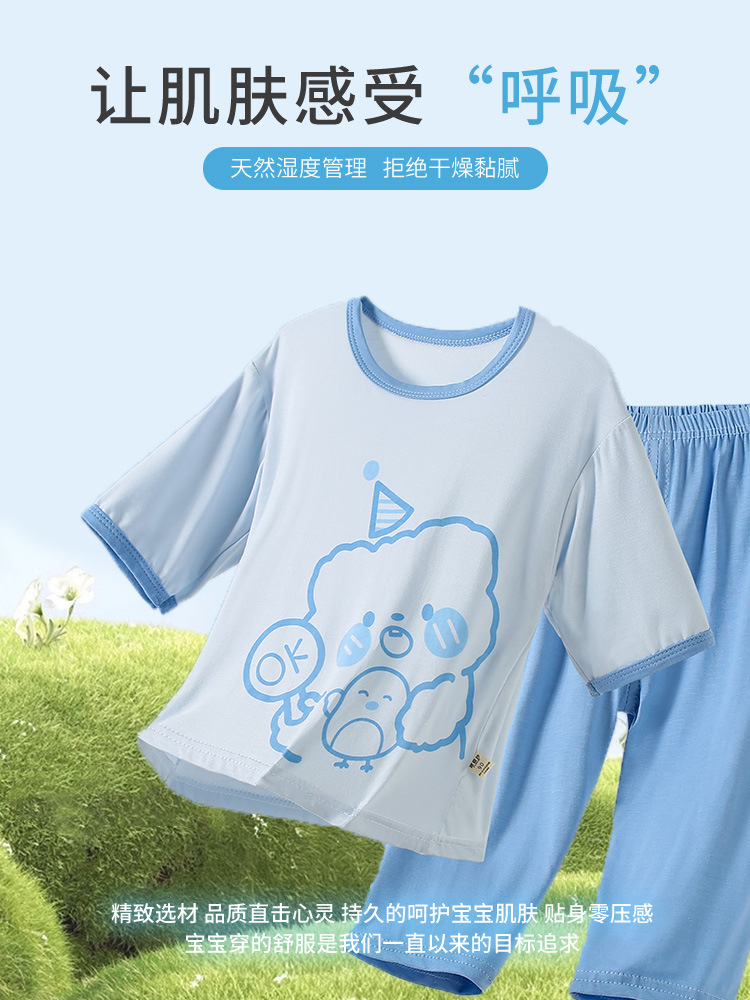 봄과 여름 어린이 에어컨 의류 파자마 2 종 세트 소년과 소녀 7 점 소매 얇은 모달 홈 의류 세트스토어 가기