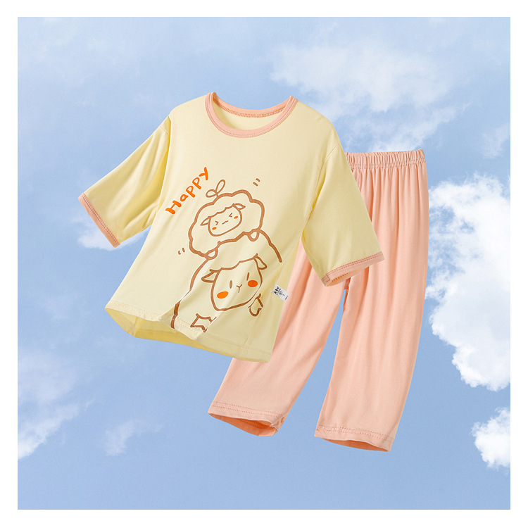 봄과 여름 어린이 에어컨 의류 파자마 2 종 세트 소년과 소녀 7 점 소매 얇은 모달 홈 의류 세트