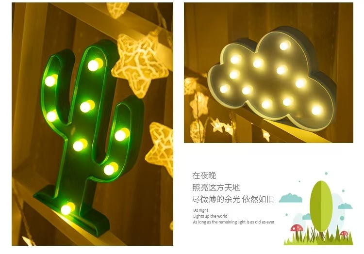 국경 간 LED 모양의 빛 무지개 오각형 선인장 플라밍고 장식 만화 램프 침실 장식 야간 조명