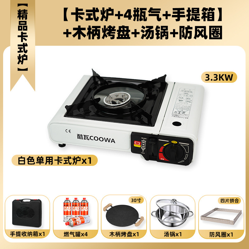 • [신규 매장 혜택 및 특별 혜택] 선착순 한정 - [4가스 나무 손잡이 베이킹 팬] 스토브 + 방풍 링 + 박스
