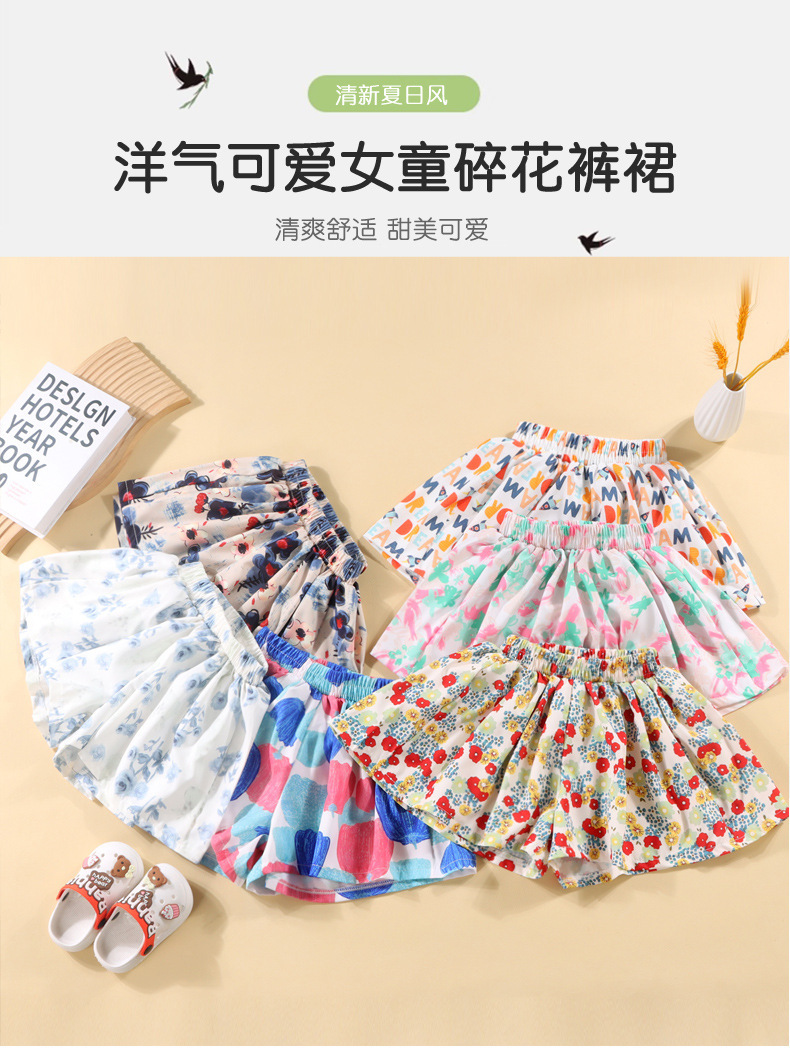 어린이 꽃무늬 치마바지 2025 여름 얇은 짧은 치마 아기 다용도 느슨한 반바지 소녀 겉옷 꽃무늬 치마바지스토어 가기