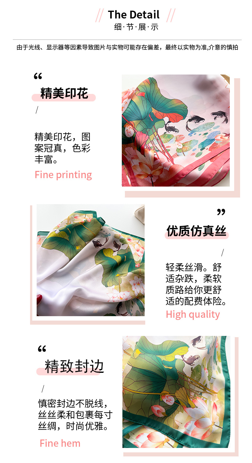 70cm 작은 광장 스카프 실크 스카프 봄과 여름 실크 연꽃 인쇄 스카프 전문 올 매치 스카프