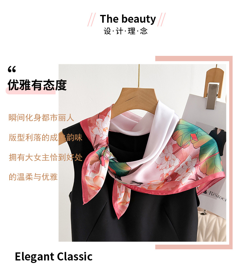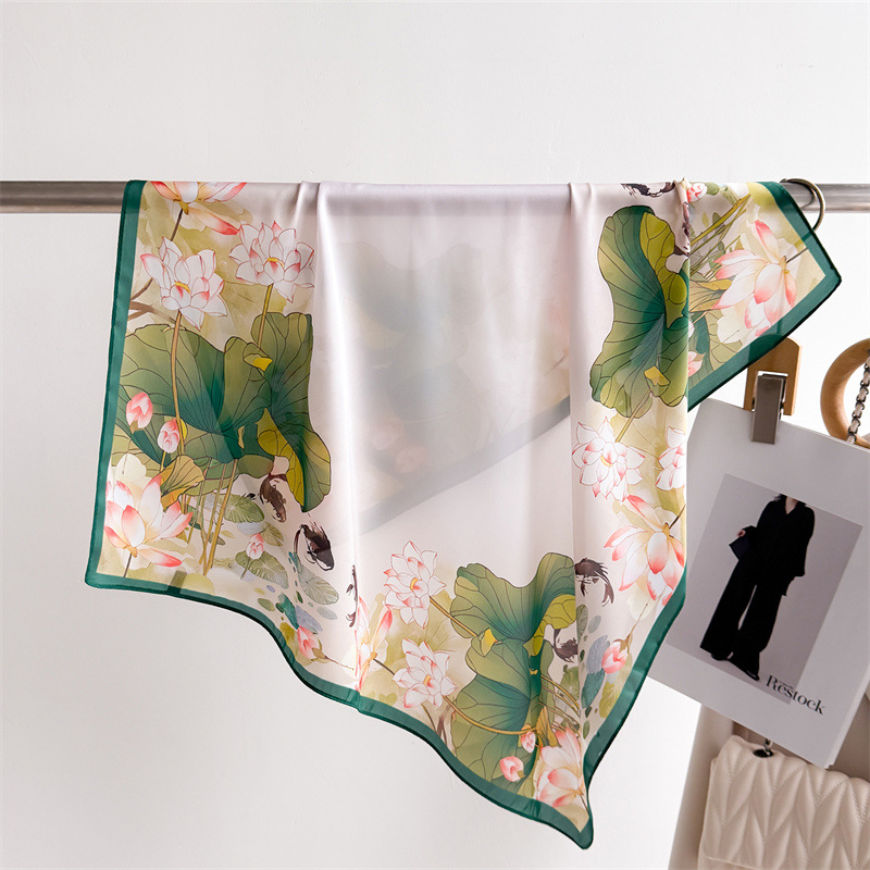 70cm 작은 광장 스카프 실크 스카프 봄과 여름 실크 연꽃 인쇄 스카프 전문 올 매치 스카프스토어 가기