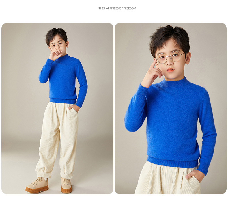 100 양모 니트웨어 가을과 겨울 새로운 어린이 반 높이 칼라 솔리드 컬러 따뜻한베이스 솔리드 컬러 올 매치 남녀 스웨터