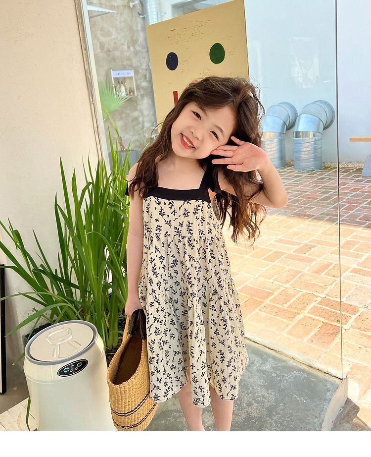 소녀 새로운 도착 꽃 원피스 여름 얇은 등방없는 스타일 상쾌한 공주 원피스 아기 소녀 조끼 슬립 원피스스토어 가기