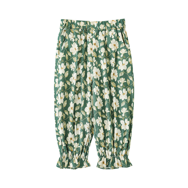 Wulibuyi 소녀 패션 꽃 바지 아기 느슨한 캐주얼 바지 2025 여름 새로운 어린이 얇은 바지
