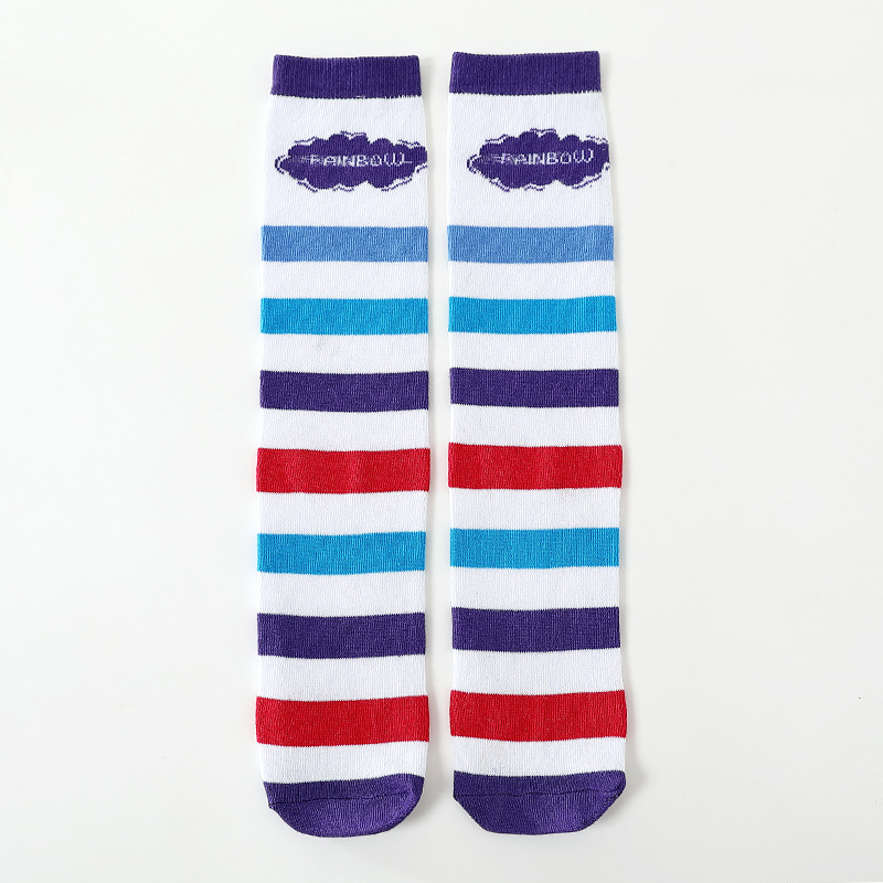 봄과 가을 새로운 무지개 줄무늬 어린이 중간 튜브 양말 면화 무릎 높은 스타킹 소년과 소녀 높은 양말