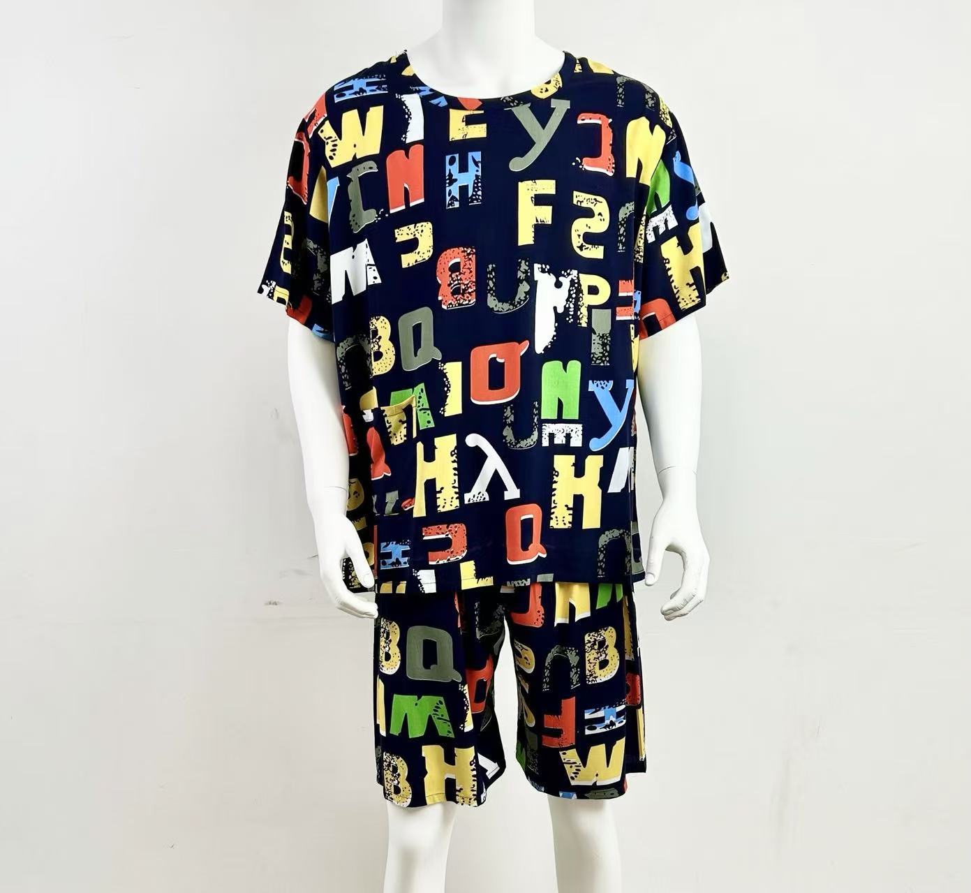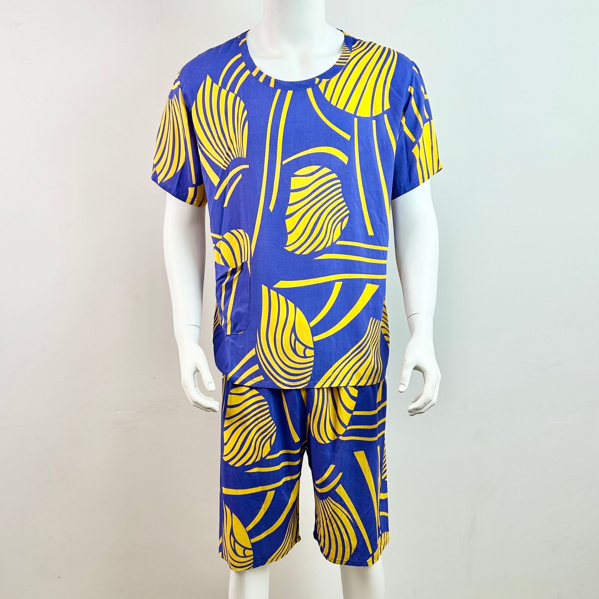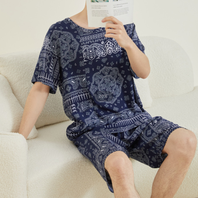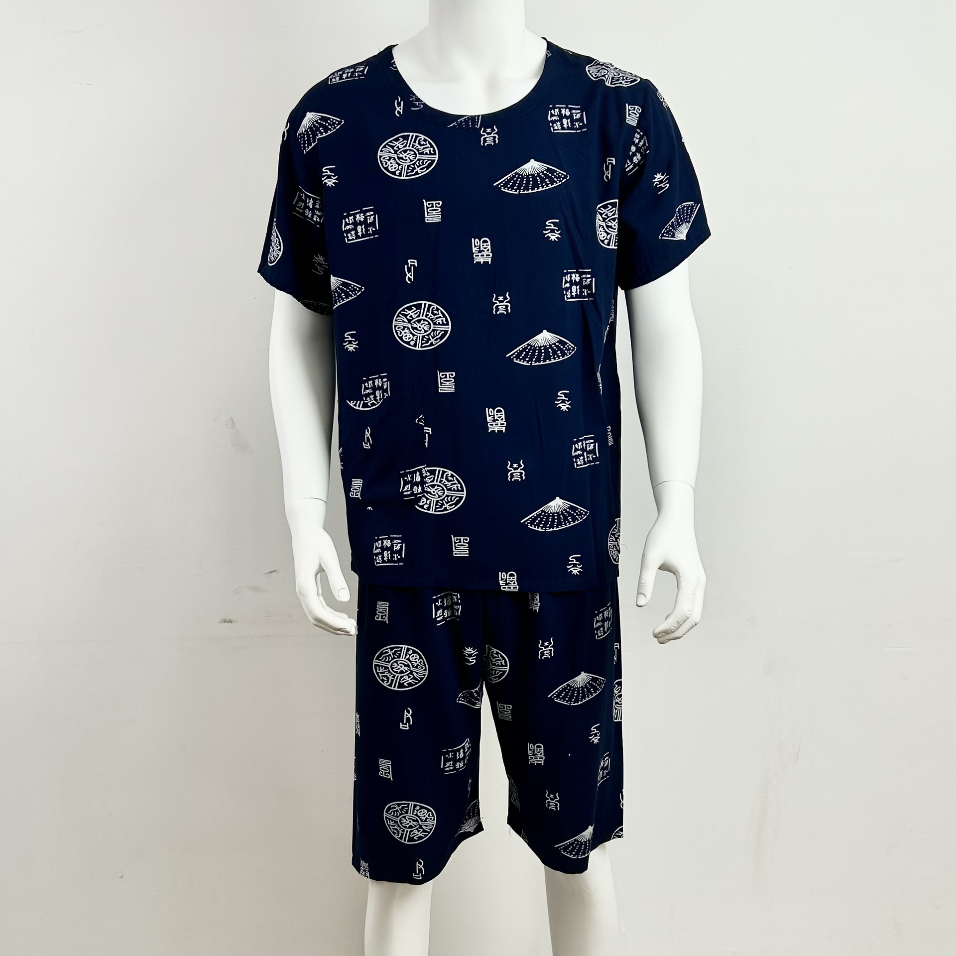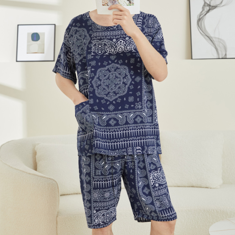 코튼 실크 남성용 세트 반바지 여름 인공 면 잠옷 세트 중년을 위한 실크 쿨 투피스 세트