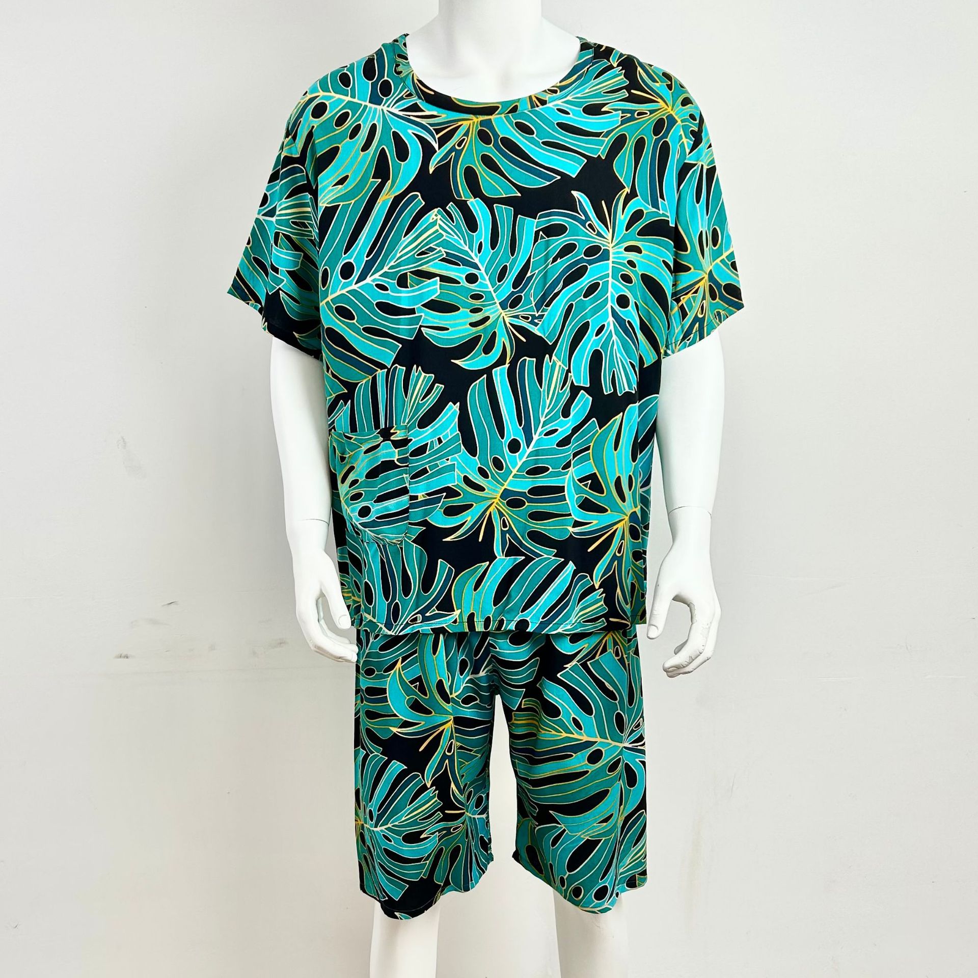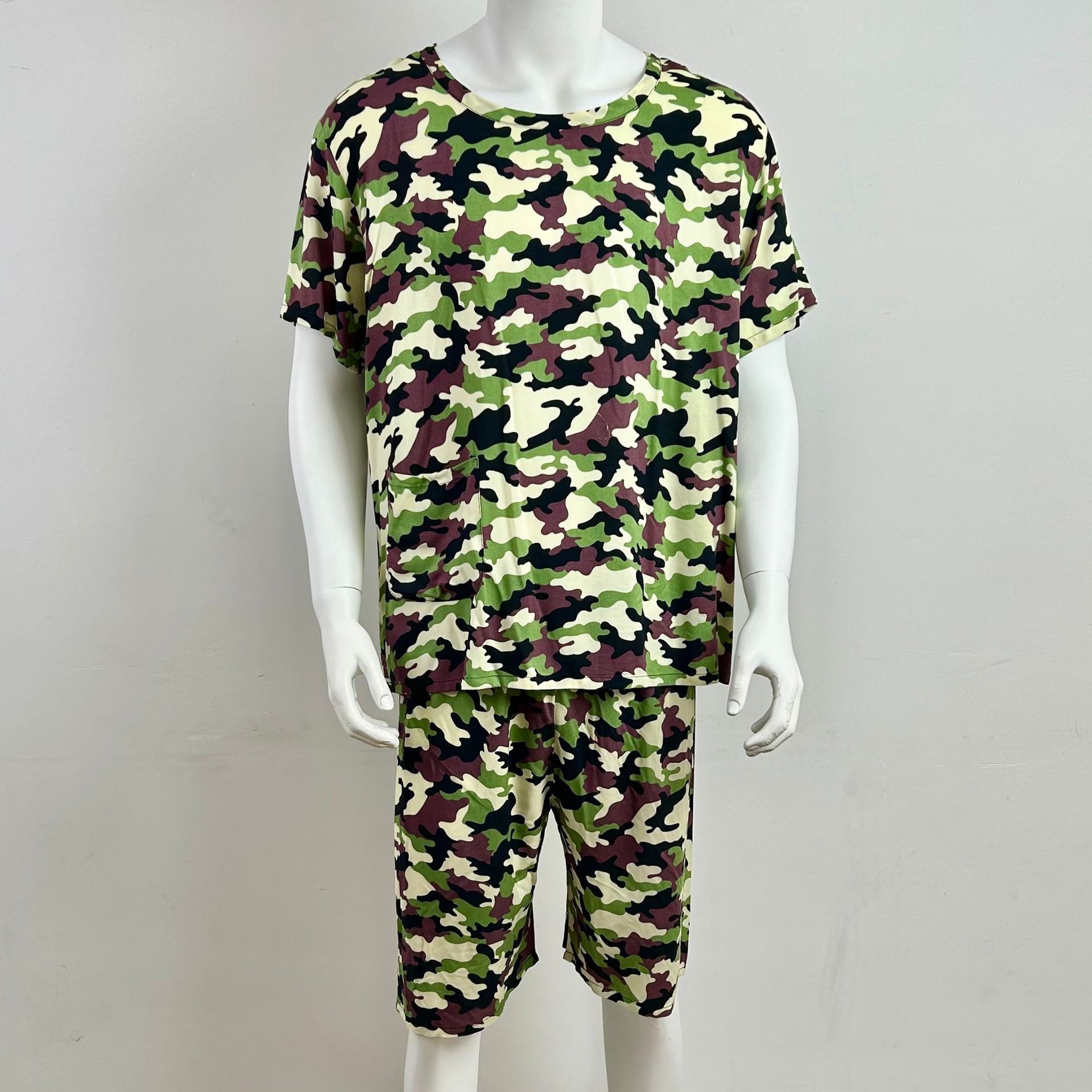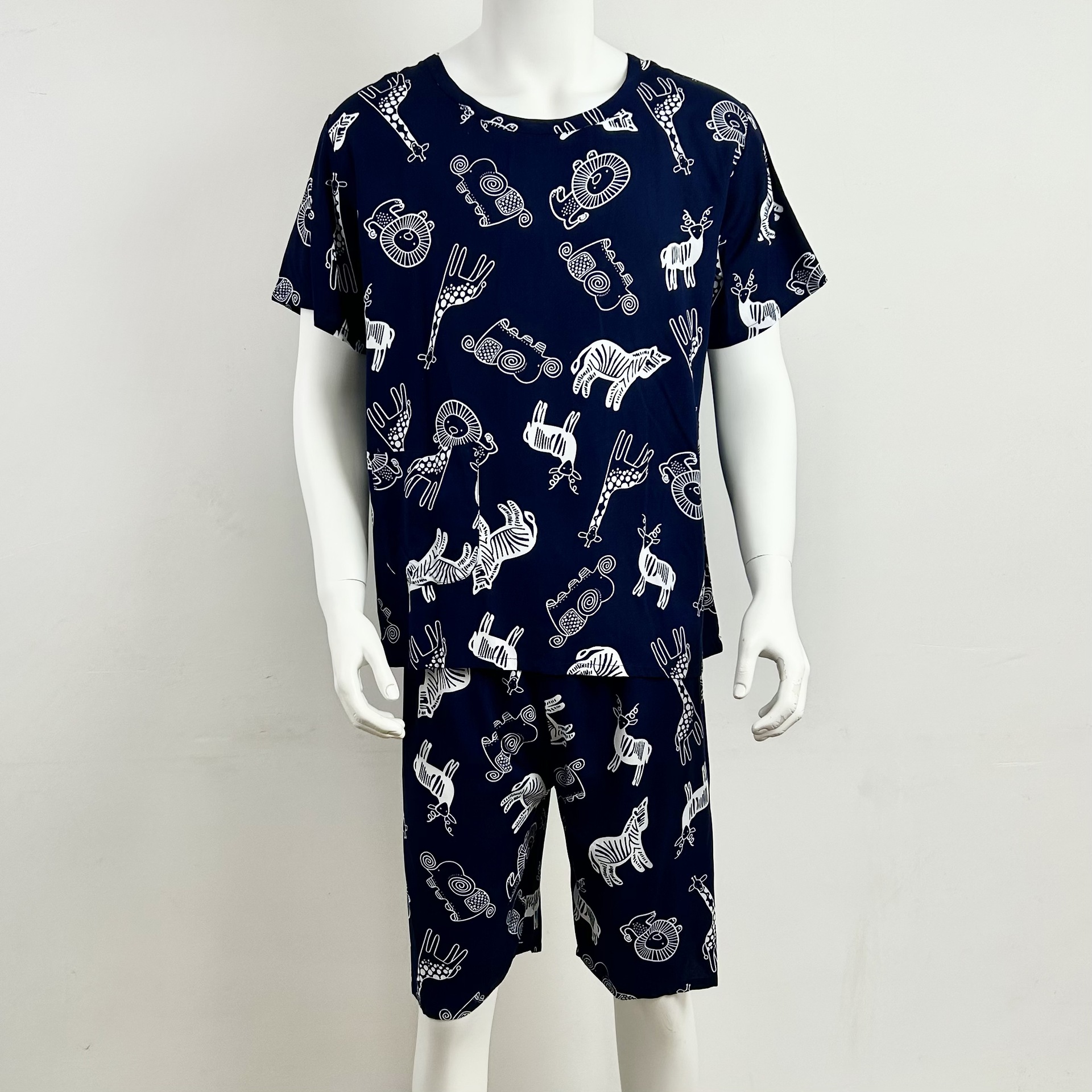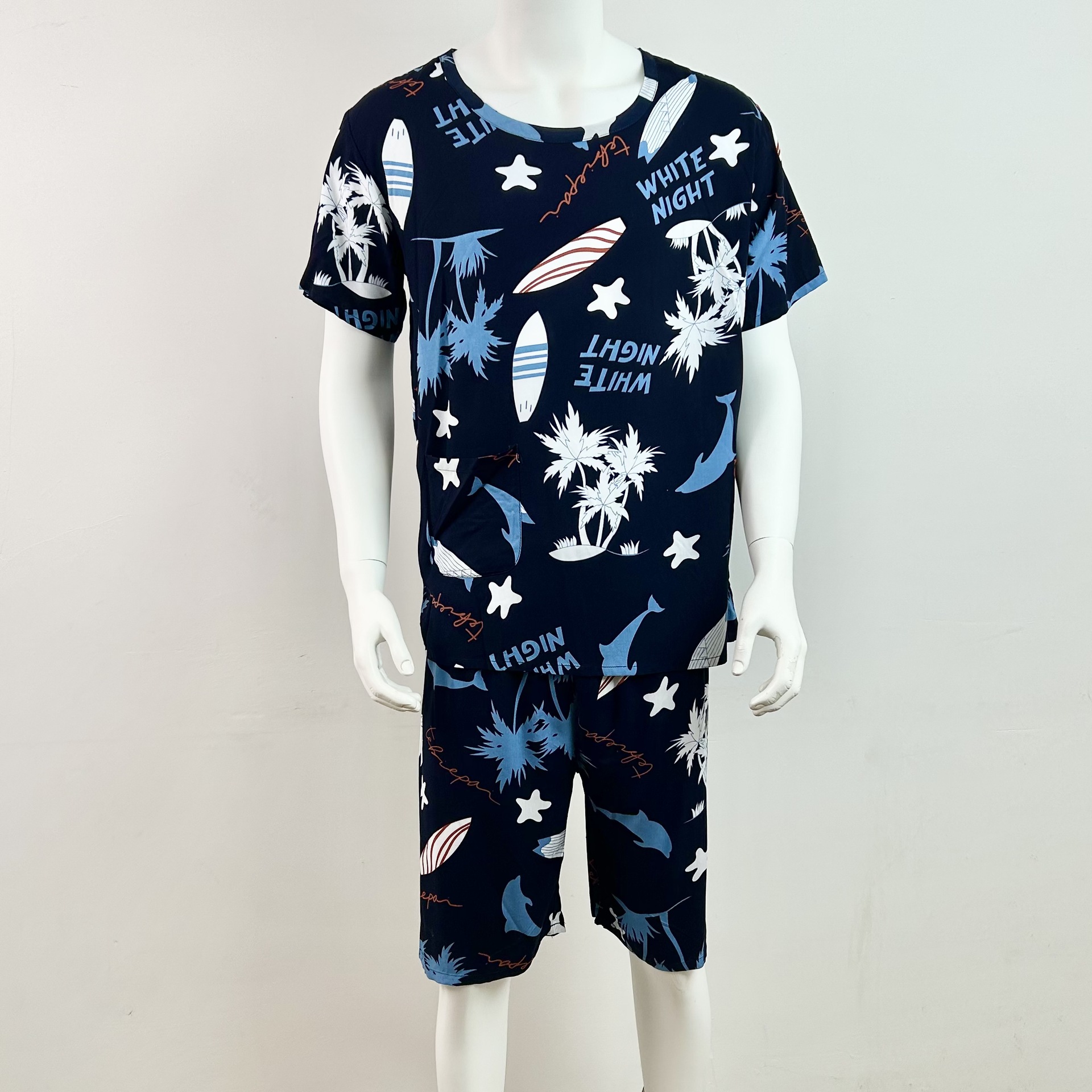 코튼 실크 남성용 세트 반바지 여름 인공 면 잠옷 세트 중년을 위한 실크 쿨 투피스 세트