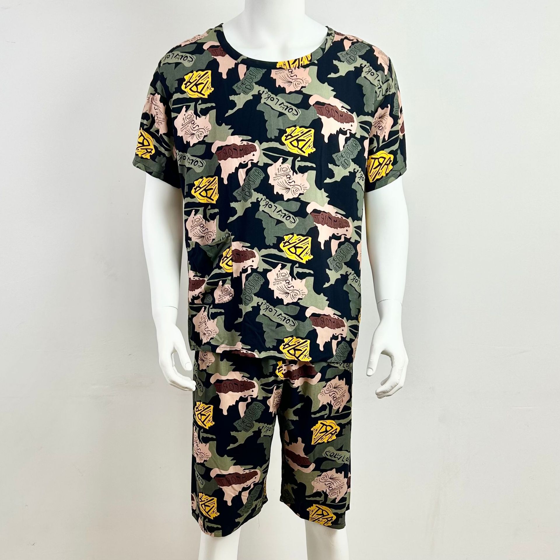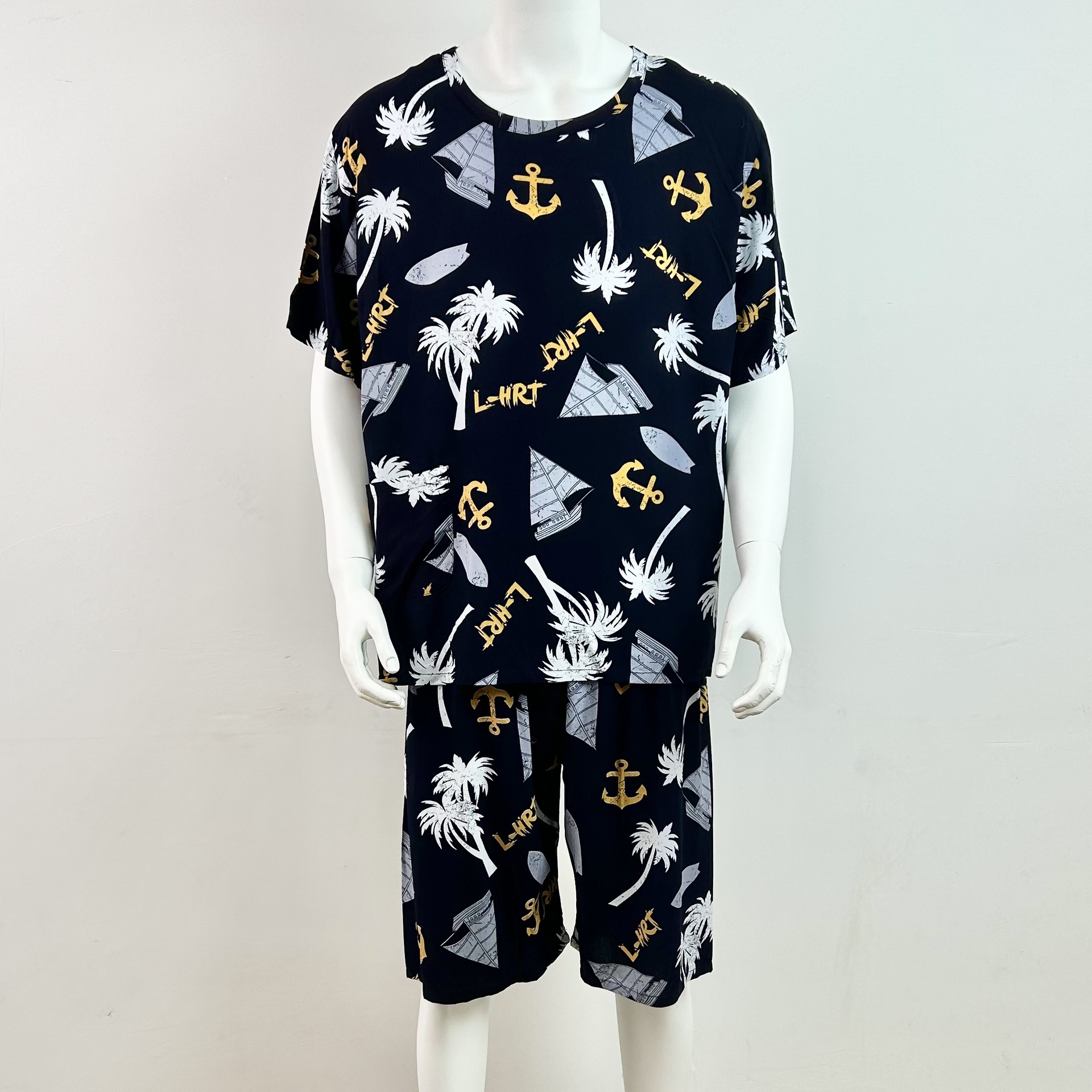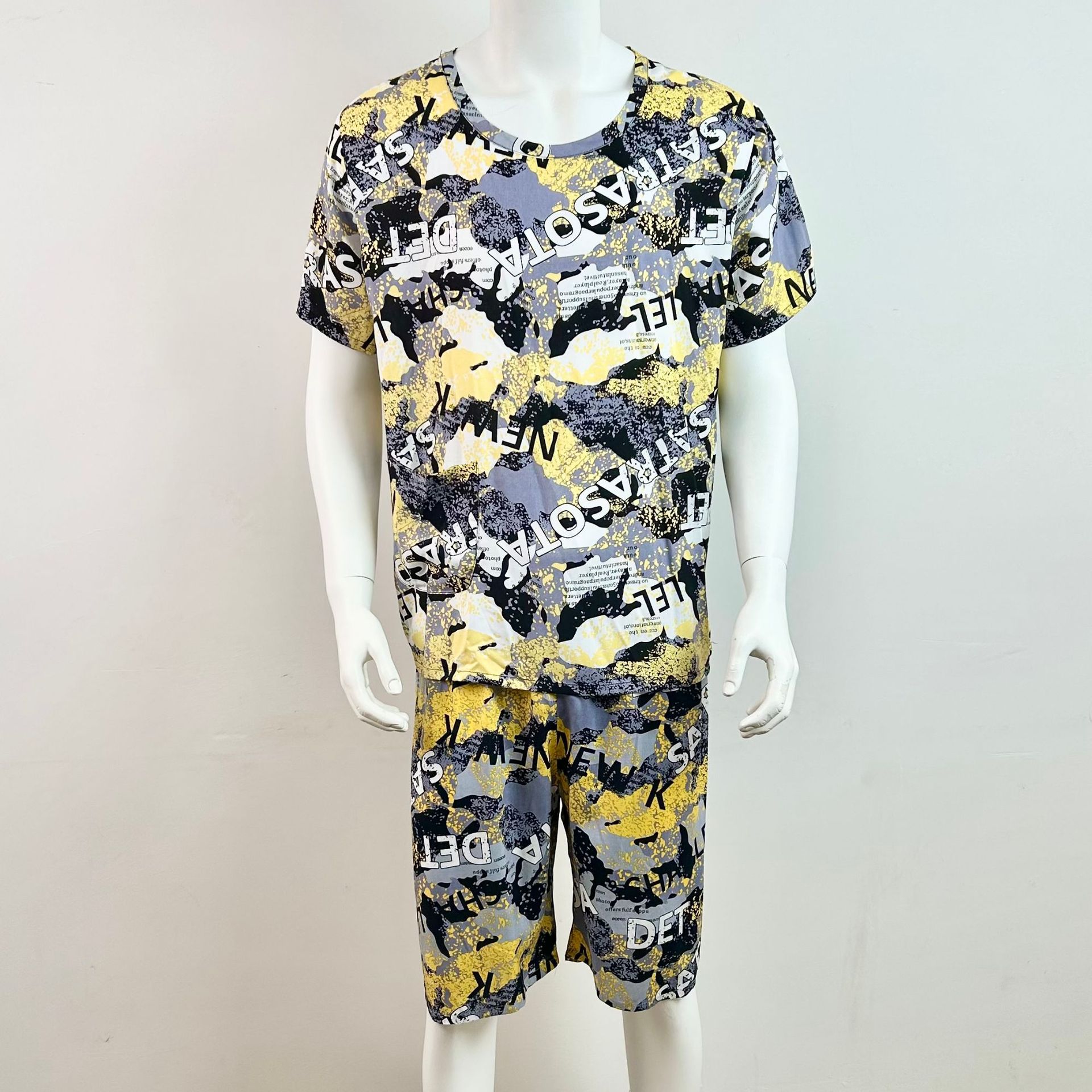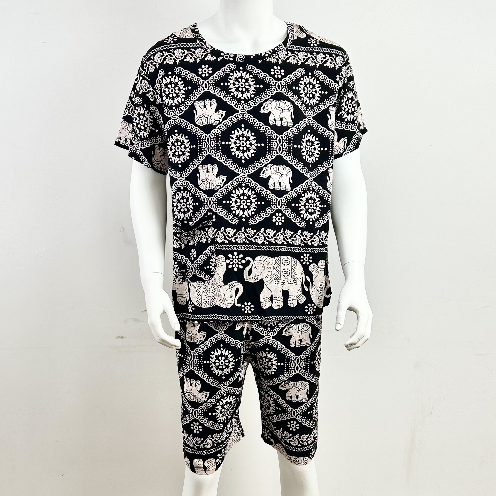 코튼 실크 남성용 세트 반바지 여름 인공 면 잠옷 세트 중년을 위한 실크 쿨 투피스 세트