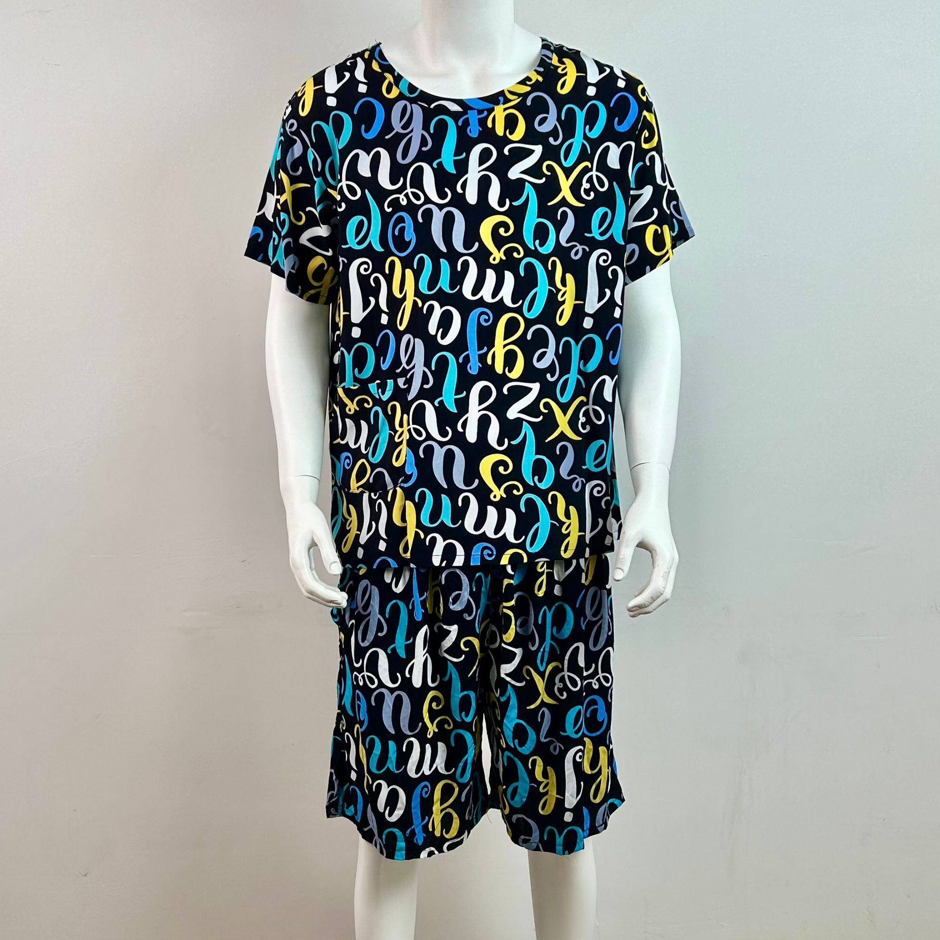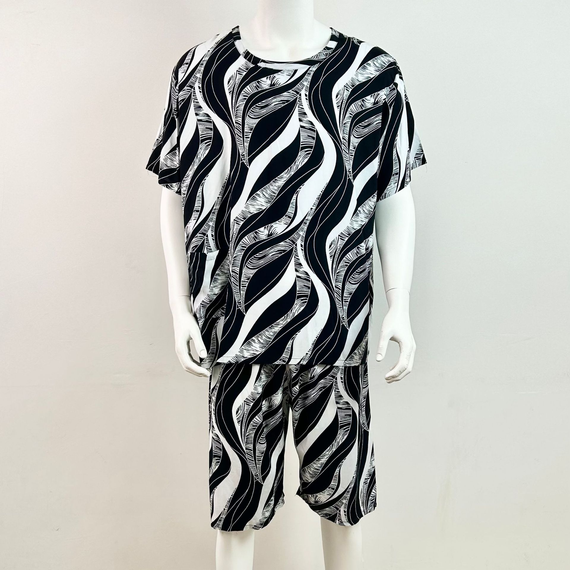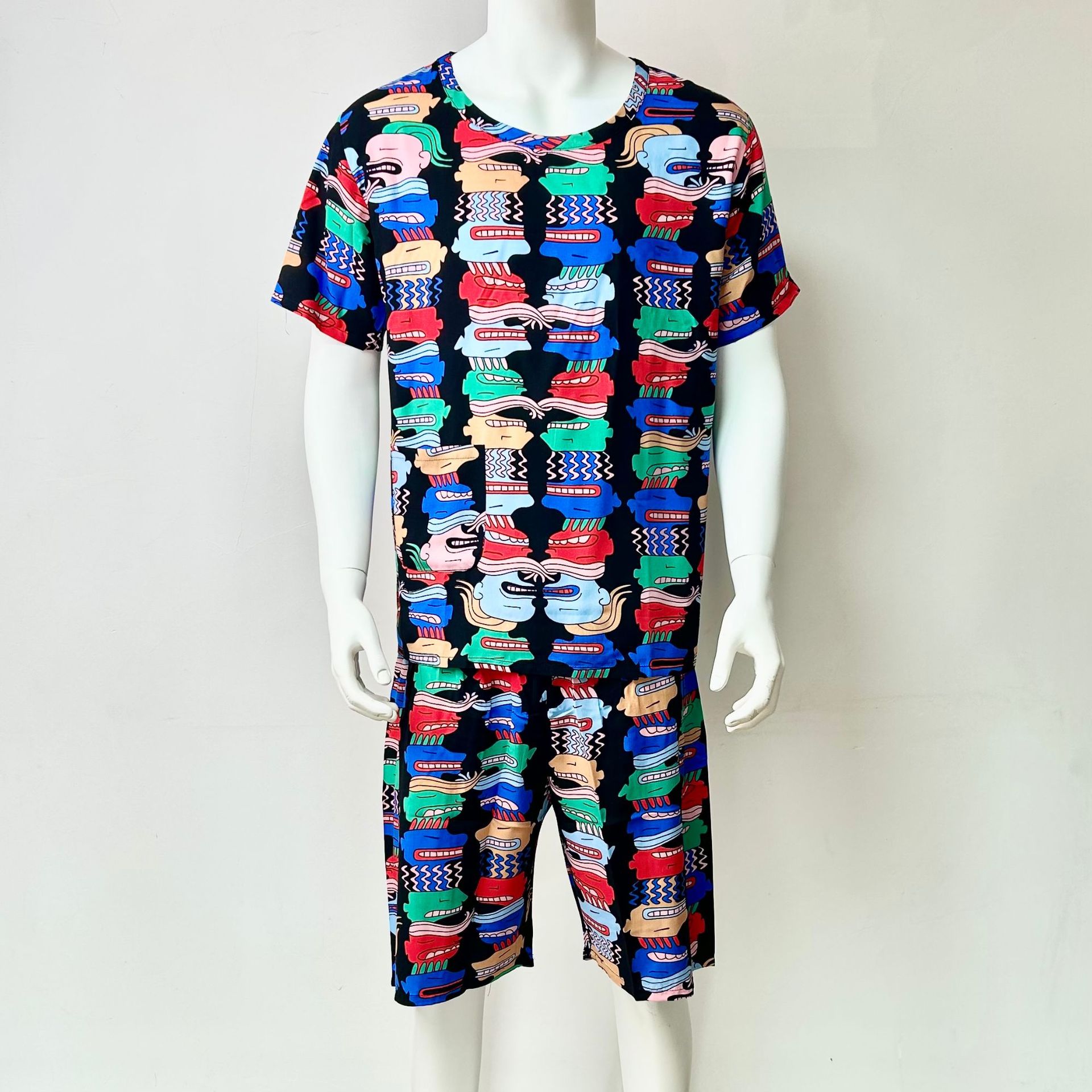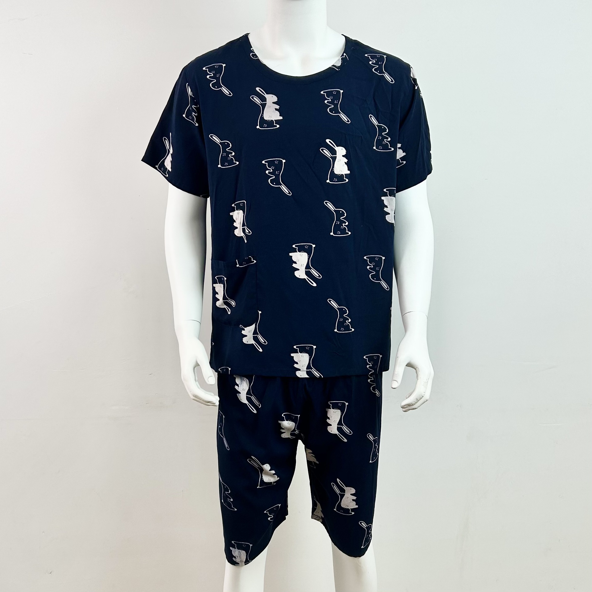 코튼 실크 남성용 세트 반바지 여름 인공 면 잠옷 세트 중년을 위한 실크 쿨 투피스 세트