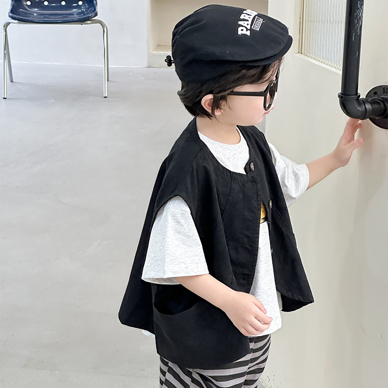 소년 작업복 조끼 2025 새로운 한국 스타일 아기 소년 유행 양복 조끼 다목적 어린이 유행 여름상의