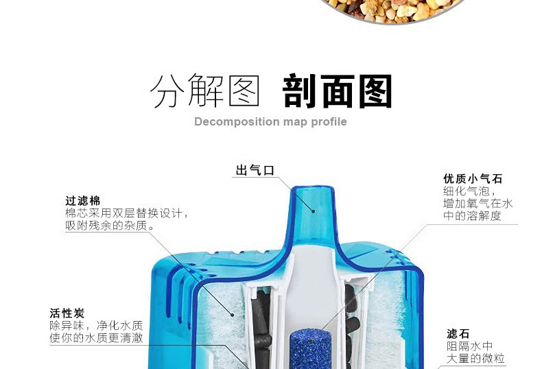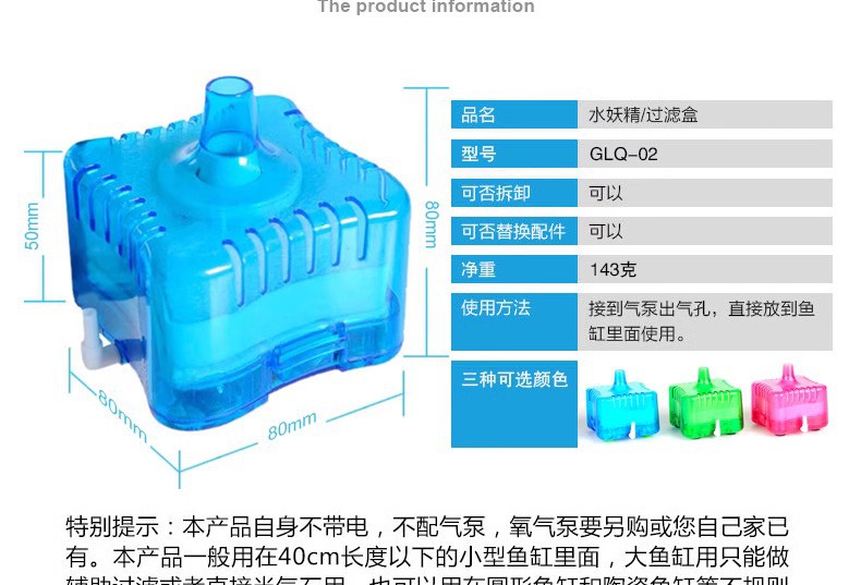 컬러 워터 고블린 생화학 필터 미니 어항 필터 안티 가스 리프트 염소 동적 생화학 필터 물 고블린