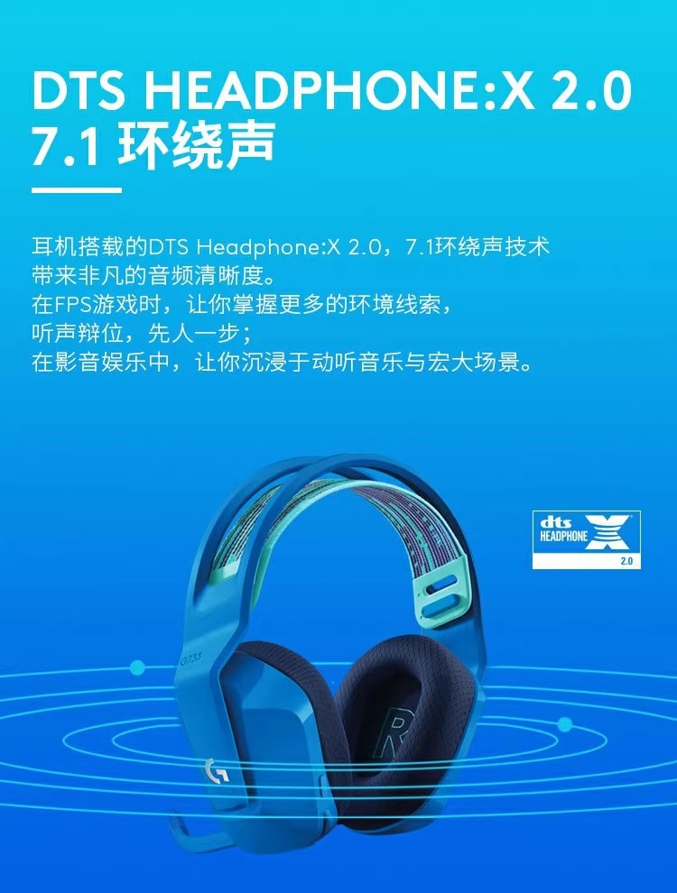LogiI Logitech G733 라디오 경쟁 게임 헤드셋 헤드셋 블랙 및 화이트 퍼플 블루 7.1 채널