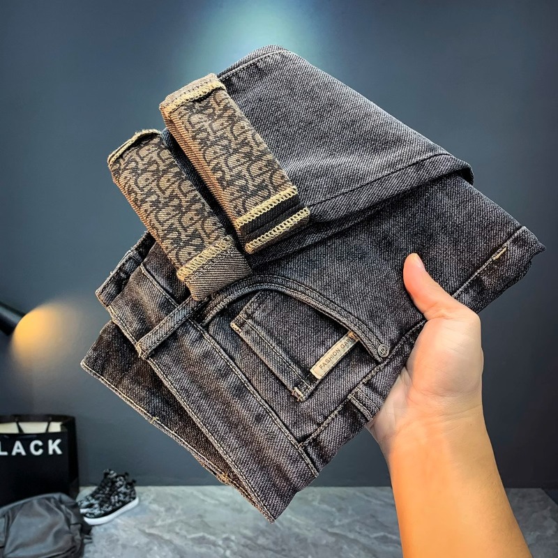 하이 엔드 트렌디 브랜드 신탕 청바지 남성용 슬림 핏 틴딩 스트레치 올 매치 롱 팬츠 봄 뉴 2025스토어 가기