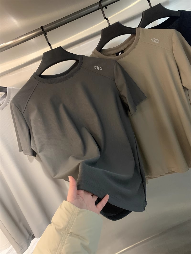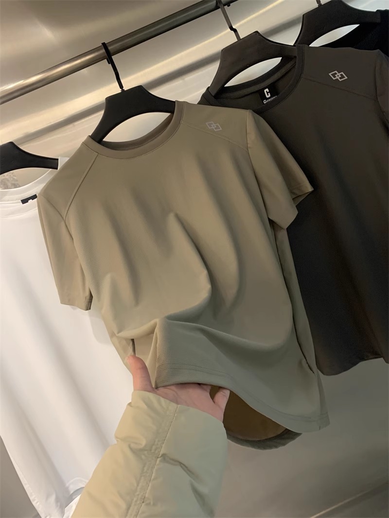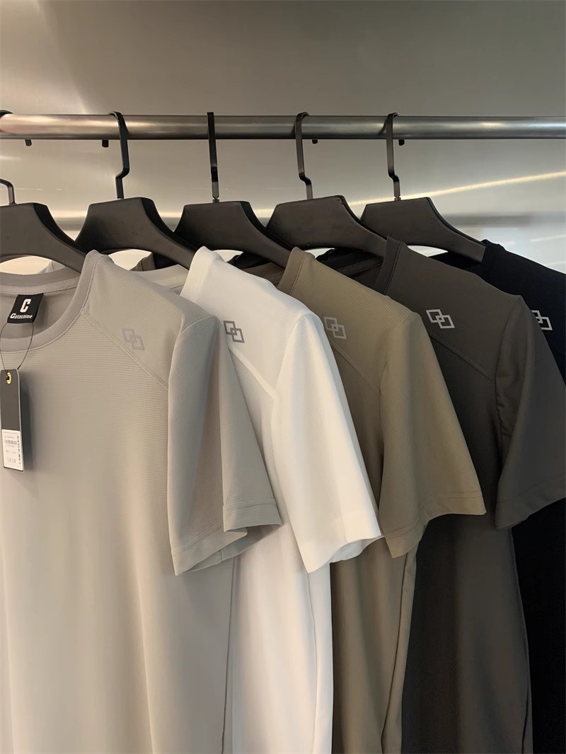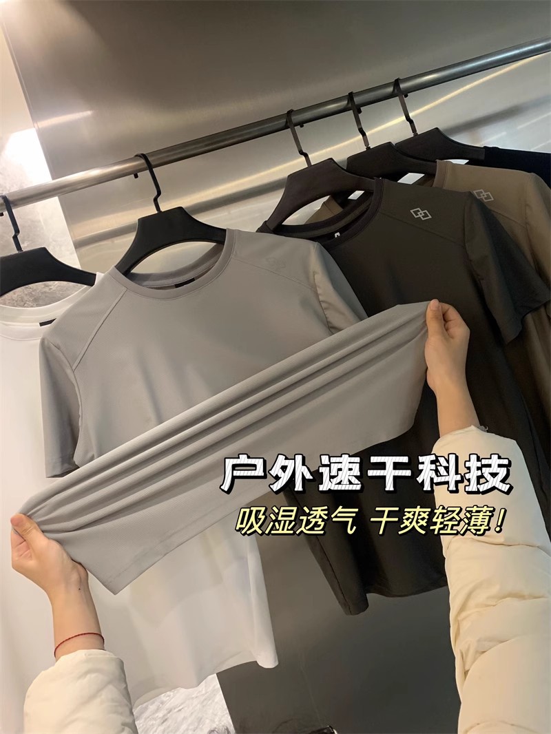 반팔 티셔츠 남자 2025 년 여름 새 남자 신속 건조 고탄성 스포츠 캐주얼 얇은 솔리드 컬러 반팔 티셔츠 남성스토어 가기