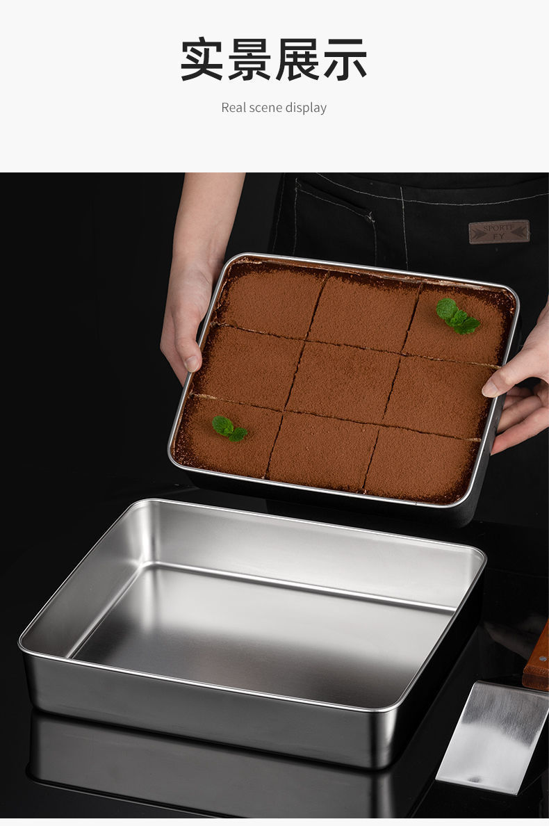 티라미수 플레이트 스테인레스 스틸 직사각형 플레이트 베이킹 케이크를위한 뚜껑 특수 플레이트가있는 직사각형 304 상자스토어 가기