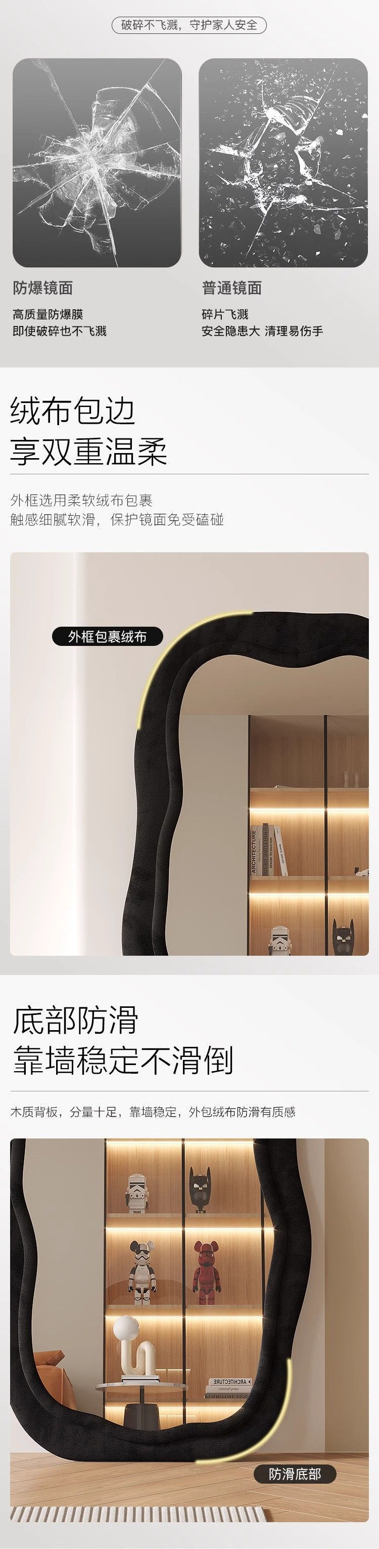 가벼운 고급 브래킷 전체 길이 거울 홈 바닥 거울 홈 의류 상점 피팅 거울 침실 드레스 거울 특수 모양의 거울
