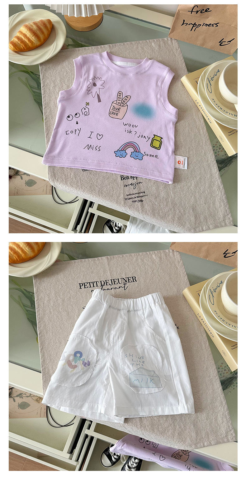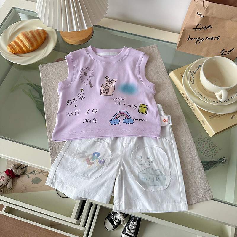 [재고] 소년 · 어린이 세트 2025 년 여름 새 한국 어린이 패셔너블 조끼 캐주얼스토어 가기