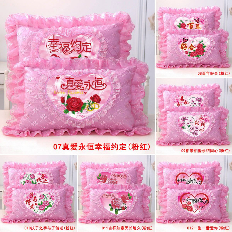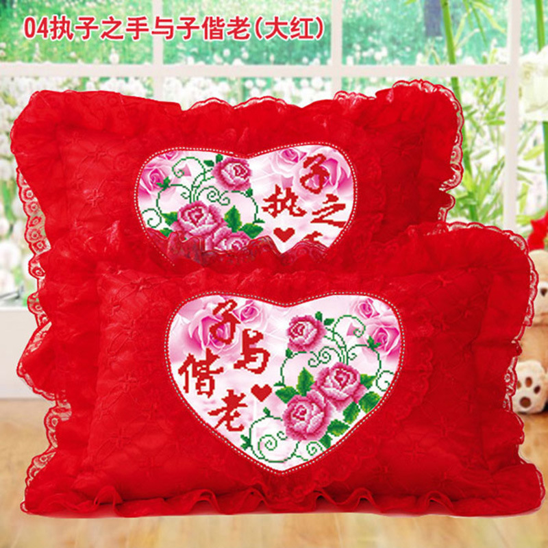 1F3 새로운 인쇄 웨딩 축제 간단한 크로스 스티치 싱글 베개 수제 자수 침실 커플 베개 하나스토어 가기