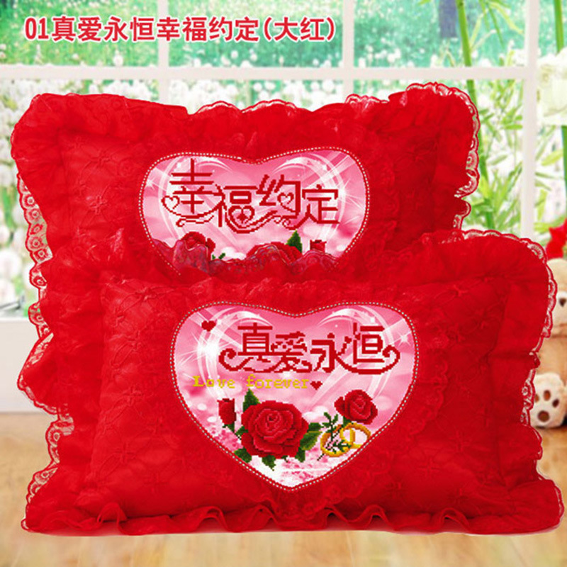 1F3 새로운 인쇄 웨딩 축제 간단한 크로스 스티치 싱글 베개 수제 자수 침실 커플 베개 하나