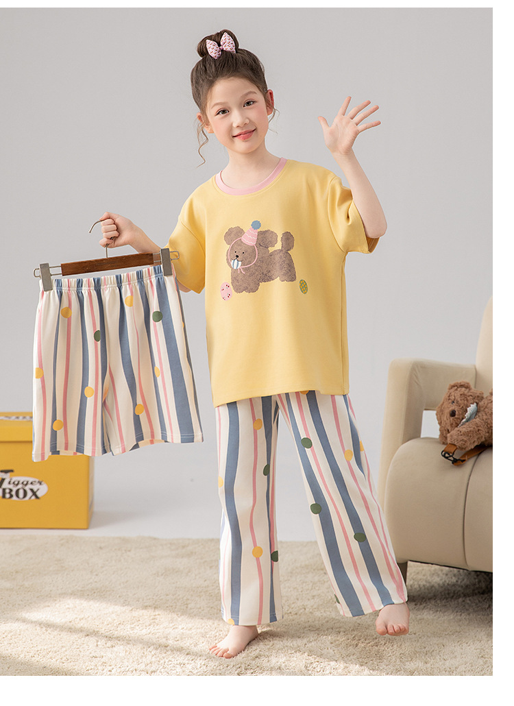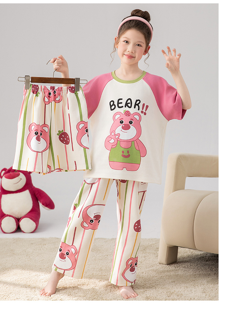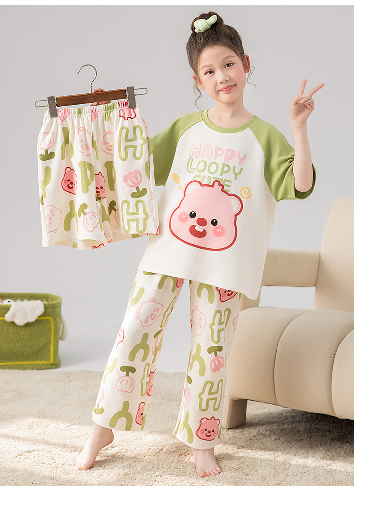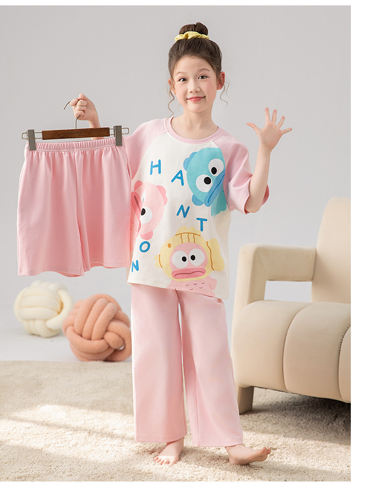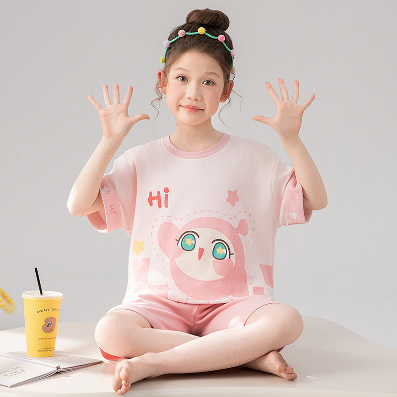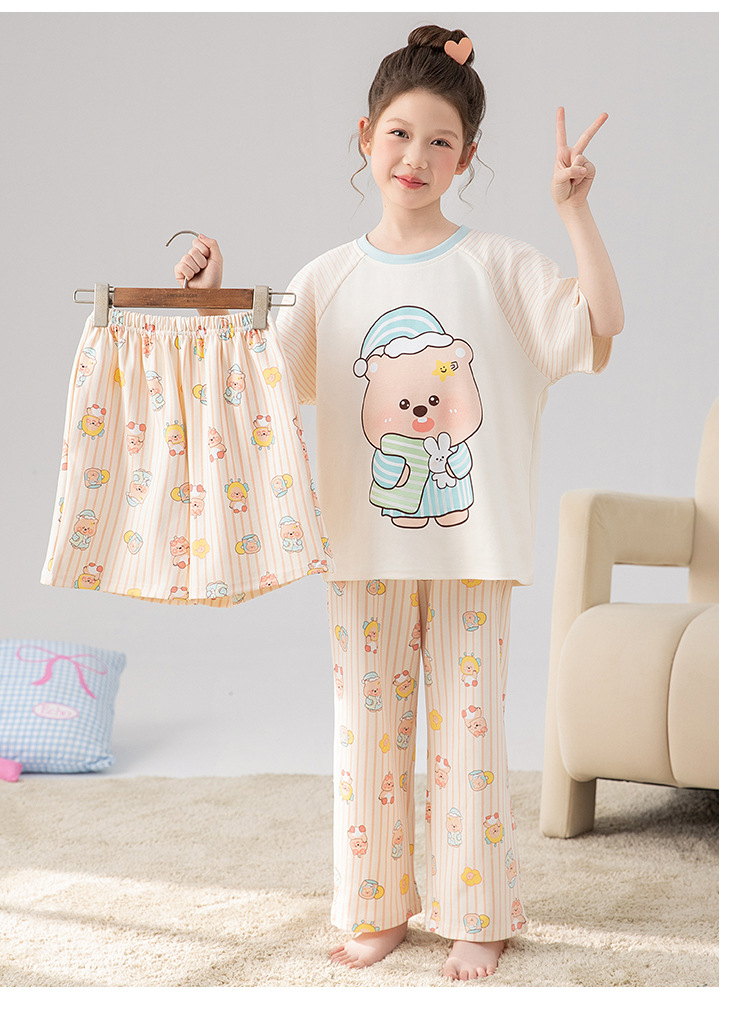 만화 어린이 잠옷 소녀 여름 반팔 바지 귀여운 3 피스 세트 아기와 어린 소녀의 집 옷스토어 가기