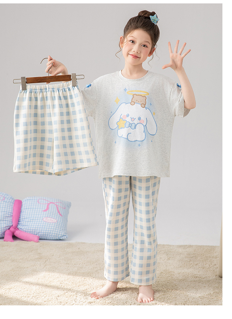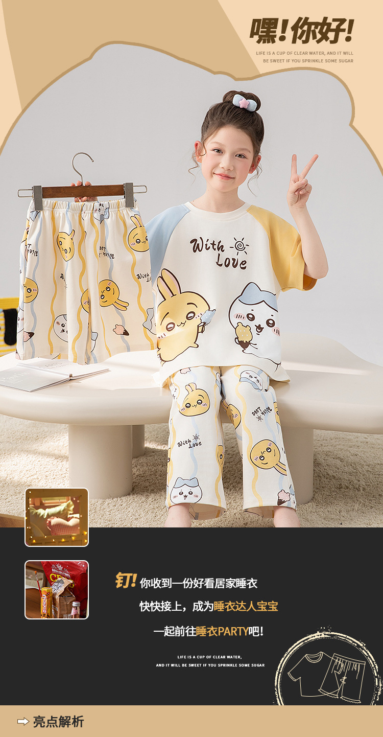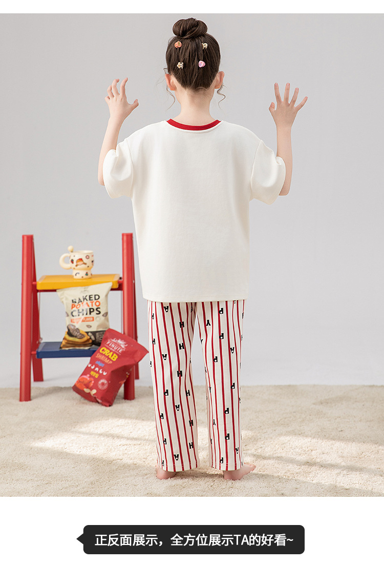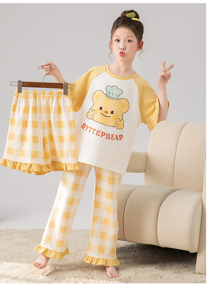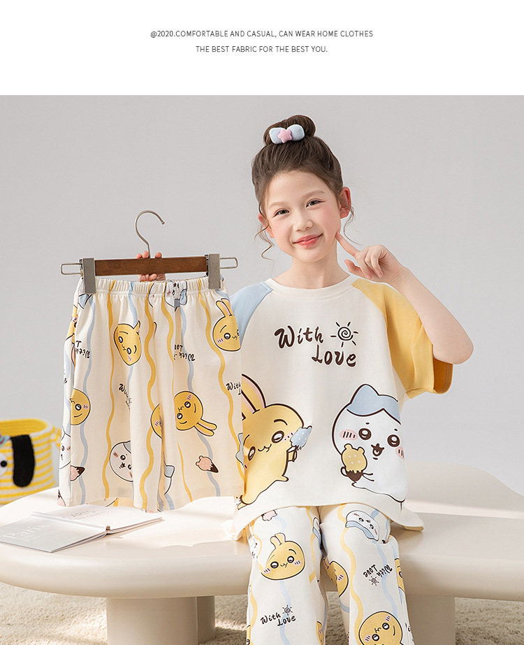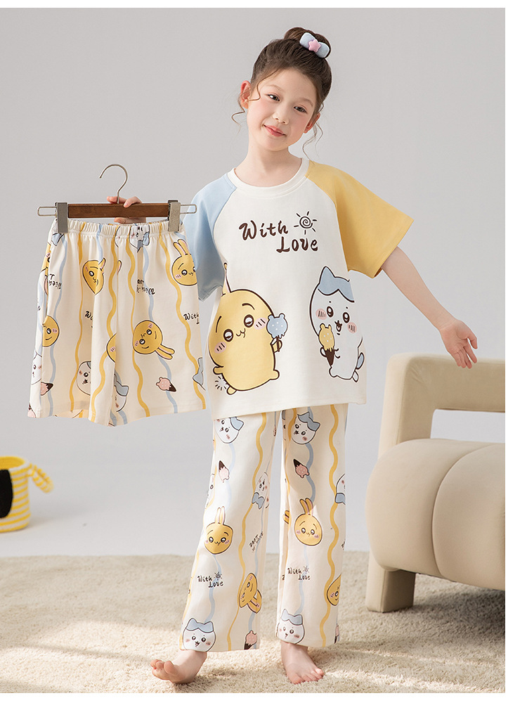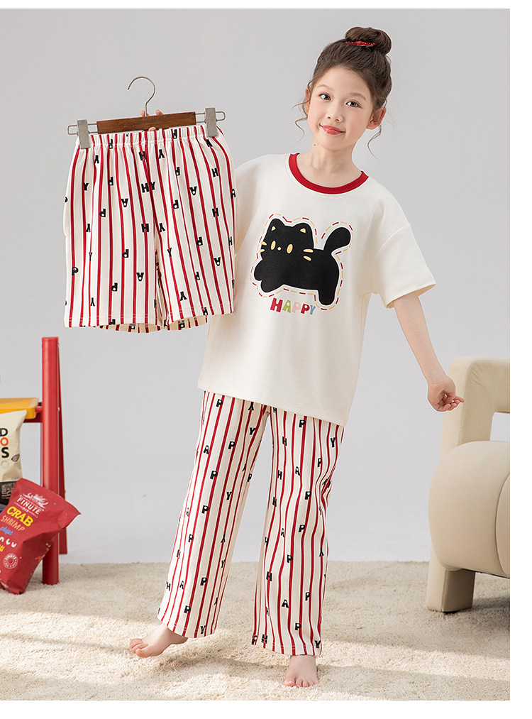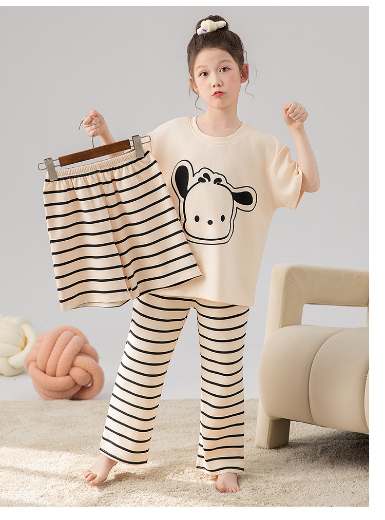만화 어린이 잠옷 소녀 여름 반팔 바지 귀여운 3 피스 세트 아기와 어린 소녀의 집 옷
