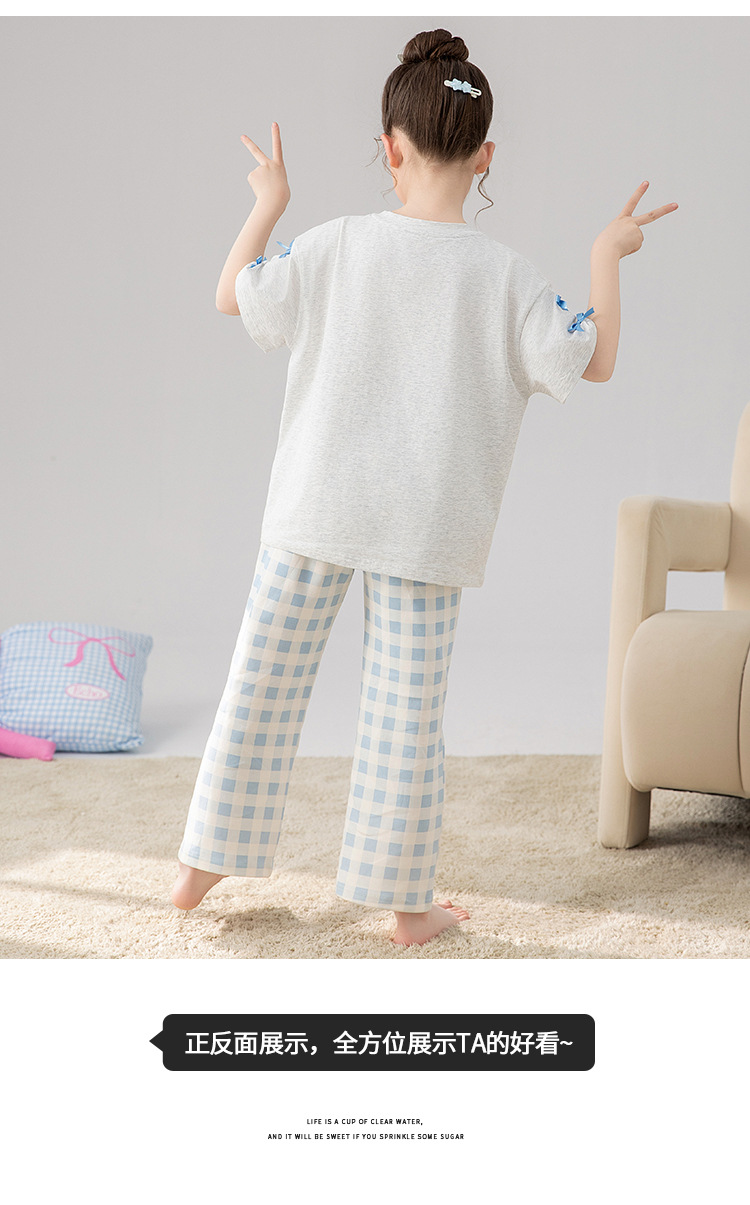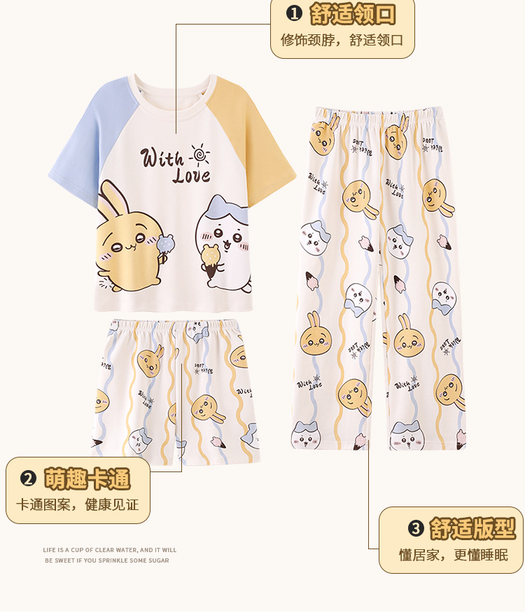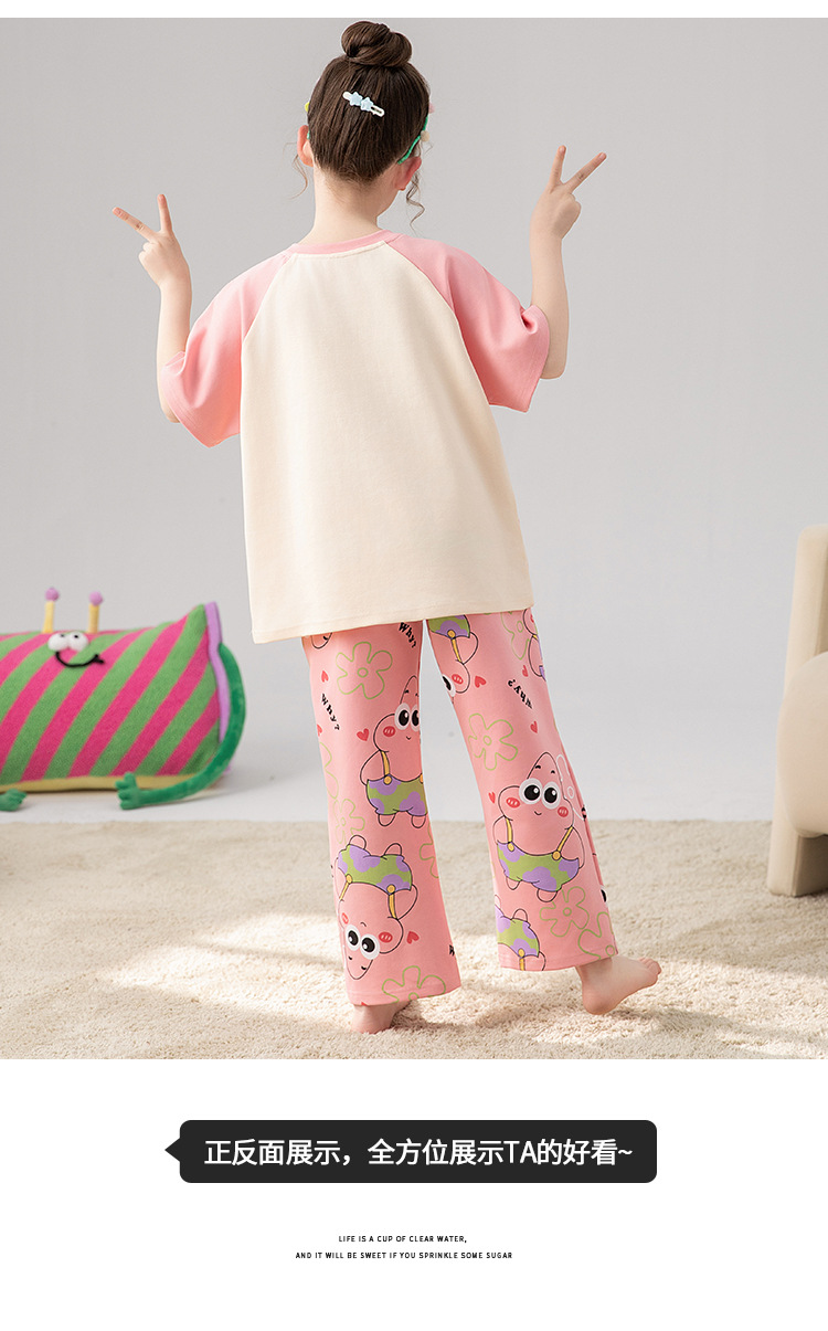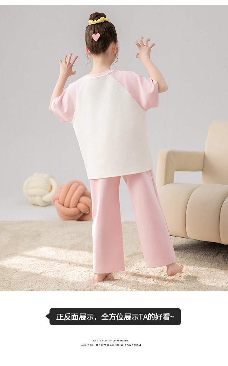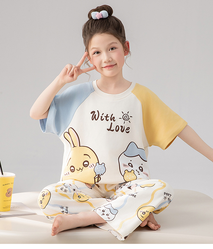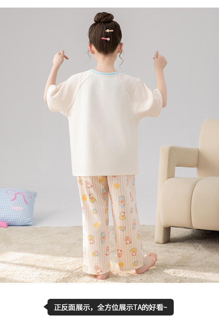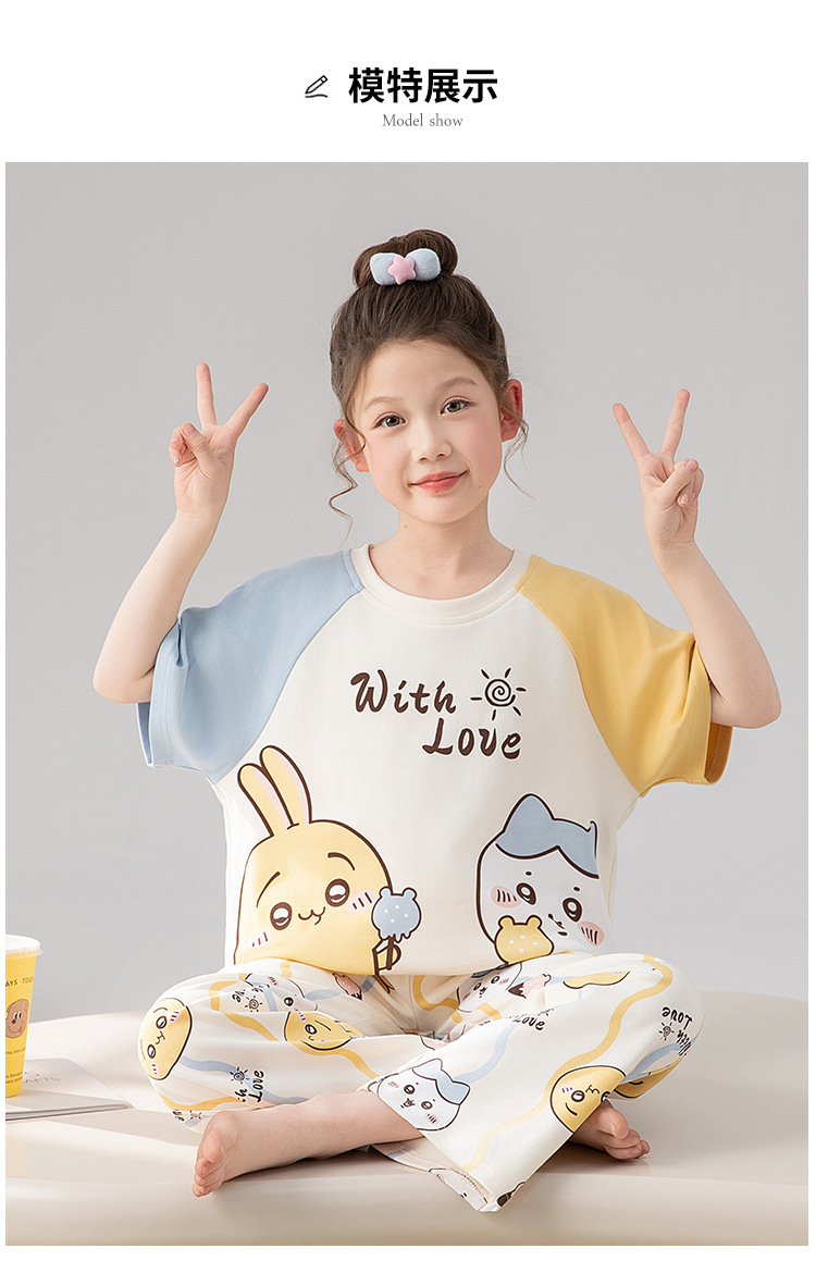 만화 어린이 잠옷 소녀 여름 반팔 바지 귀여운 3 피스 세트 아기와 어린 소녀의 집 옷