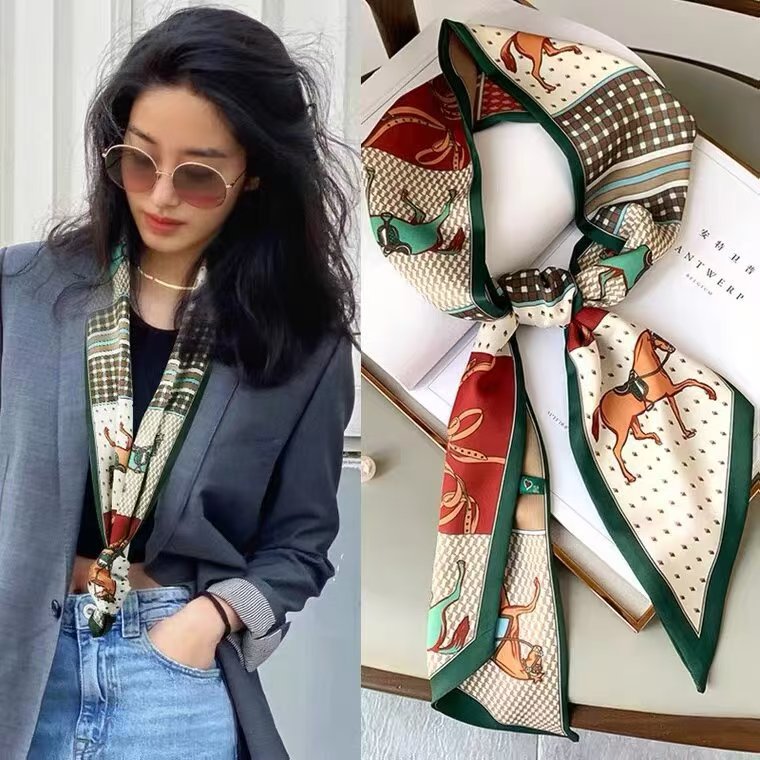 봄과 가을 여성을 위한 얇고 긴 실크 스카프, 2023년 물떼새 격자 전문 장식 작은 스카프, 머리띠, 가방 스카프