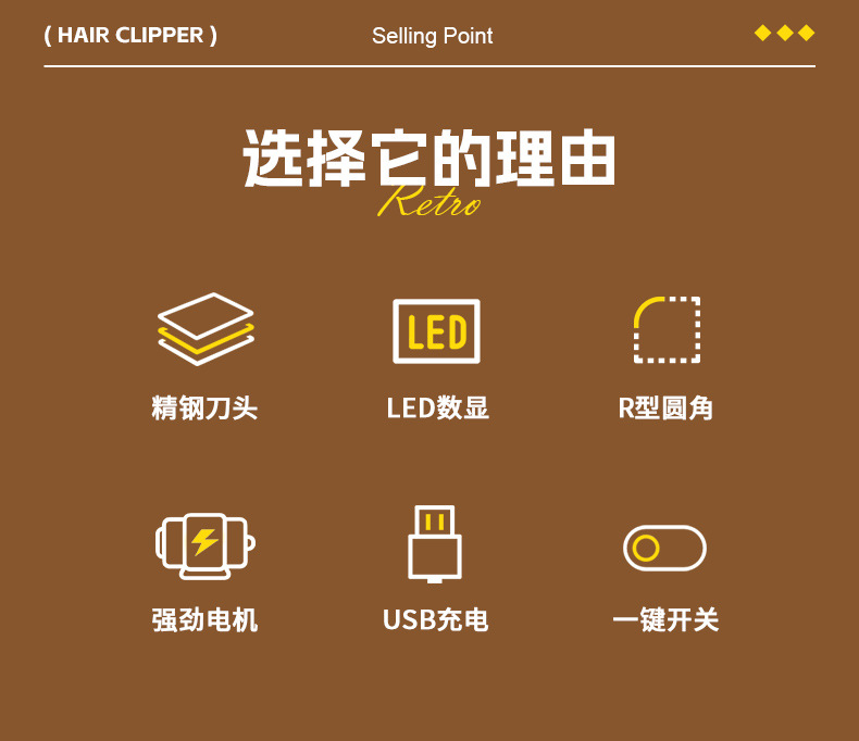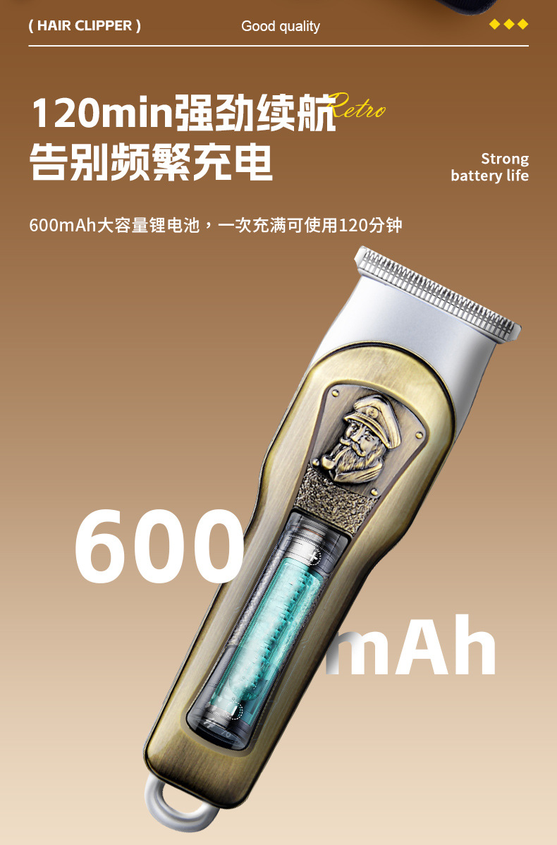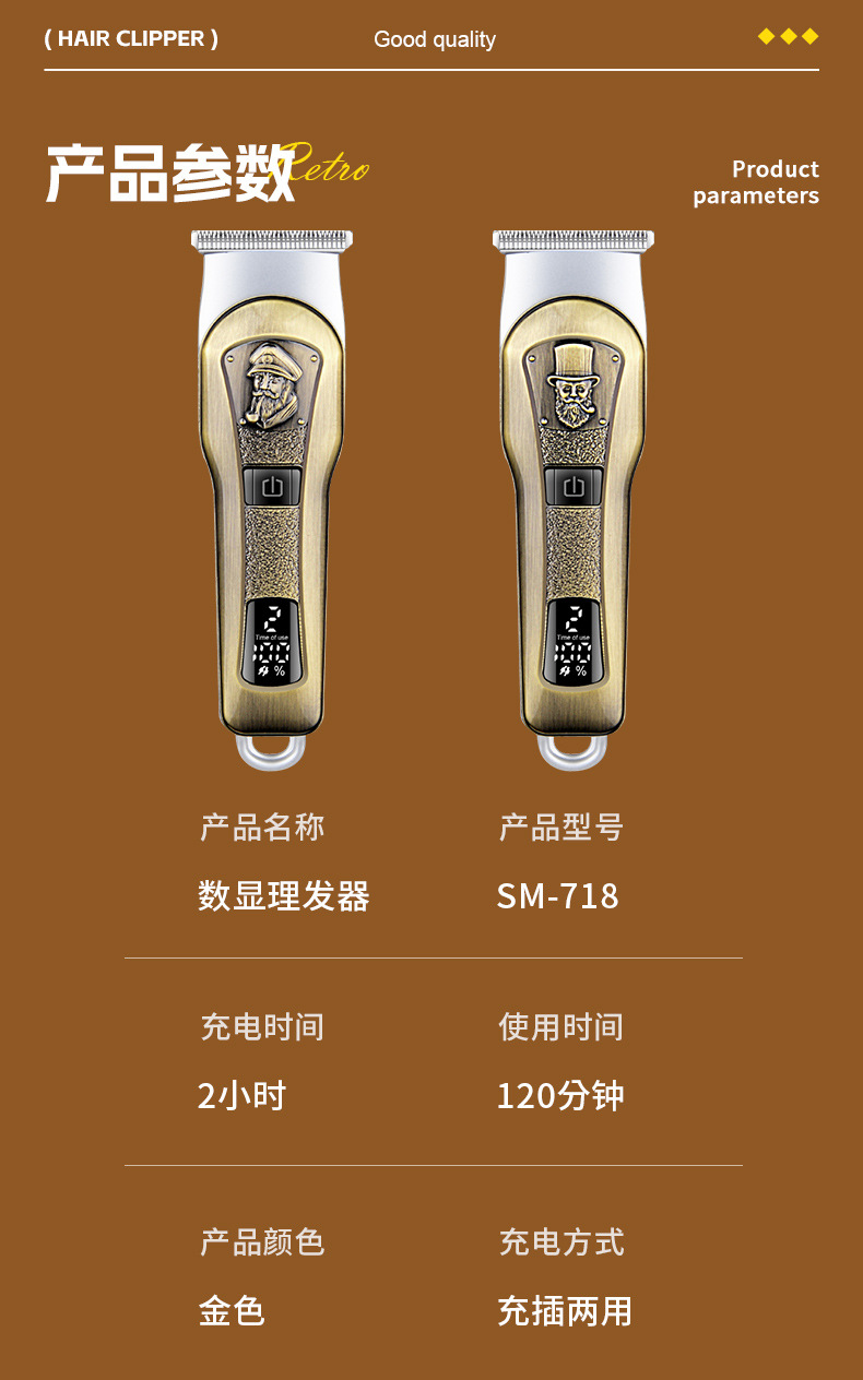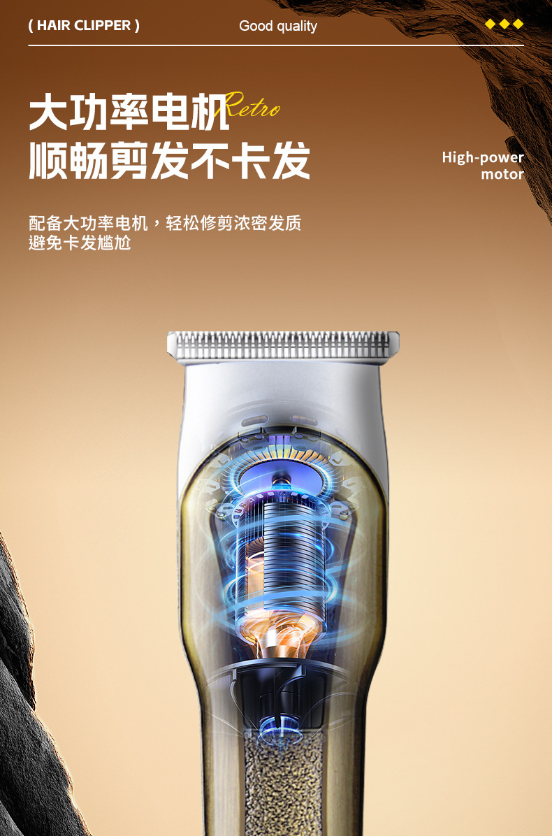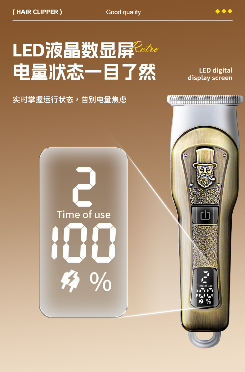 套装内含:理发器主机一个,限位梳4个,1-4mm,USB充电线,清洁刷,润滑油,英文说明书