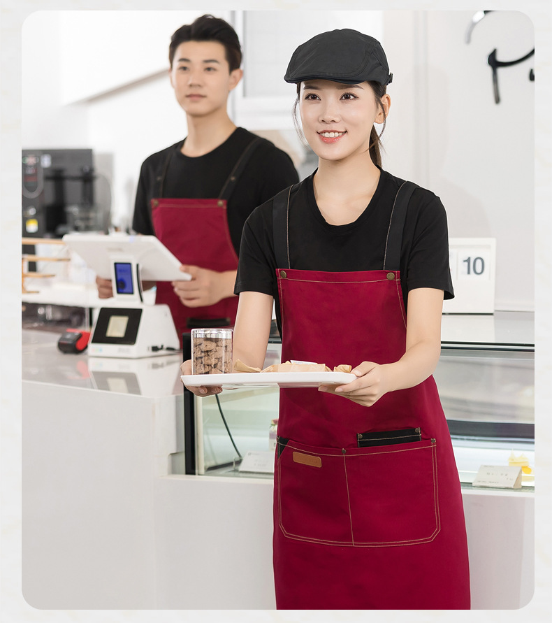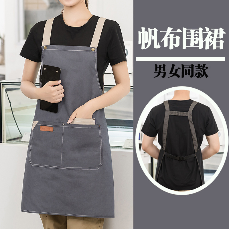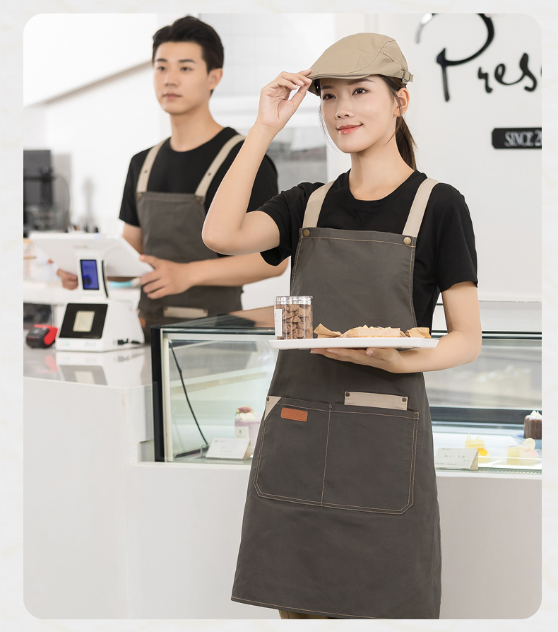케이터링 캔버스 앞치마 맞춤 로고 인쇄 우유 차 가게 꽃 가게 커피 로스터 패션 허리 작업 옷 여성