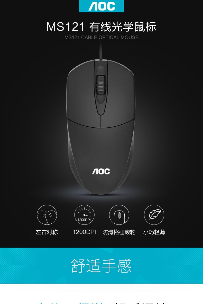 AOC MS121 유선 USB 마우스 도매 홈 오피스 비즈니스 노트북 데스크톱 컴퓨터 마우스 제조 업체스토어 가기