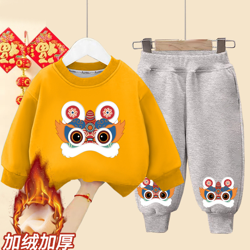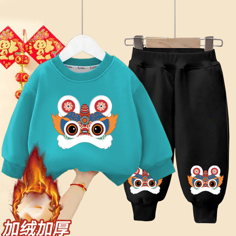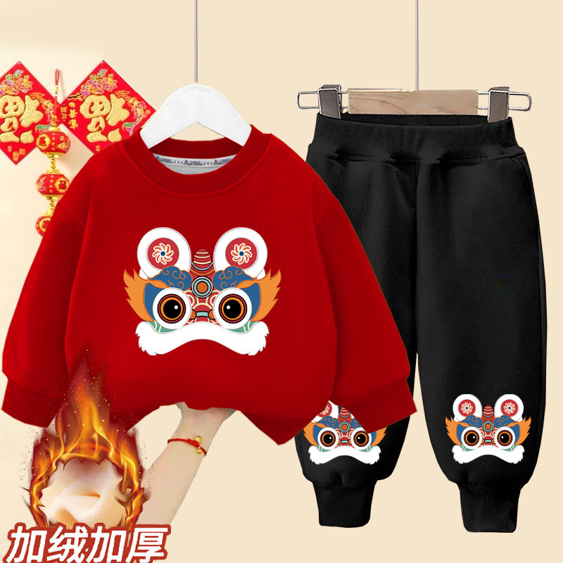 소년 소녀를위한 어린이 세트 겨울 기모 원피스 중국 스타일 2025 년 뱀 아기 축제 새해 2 피스 원피스스토어 가기