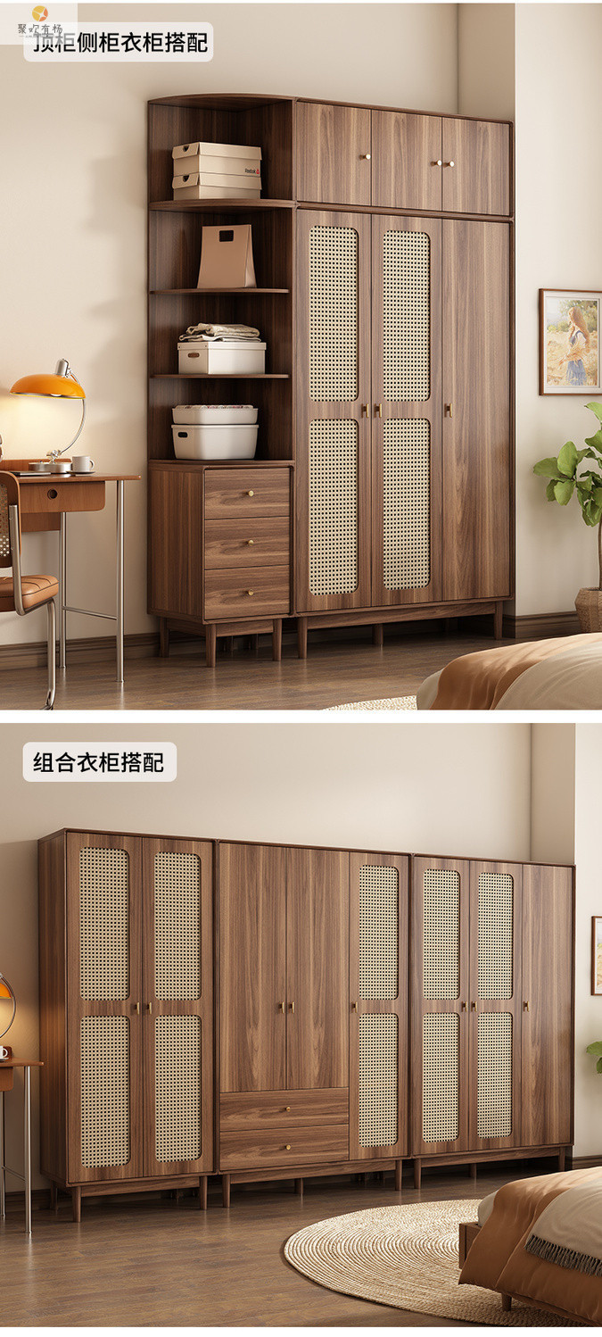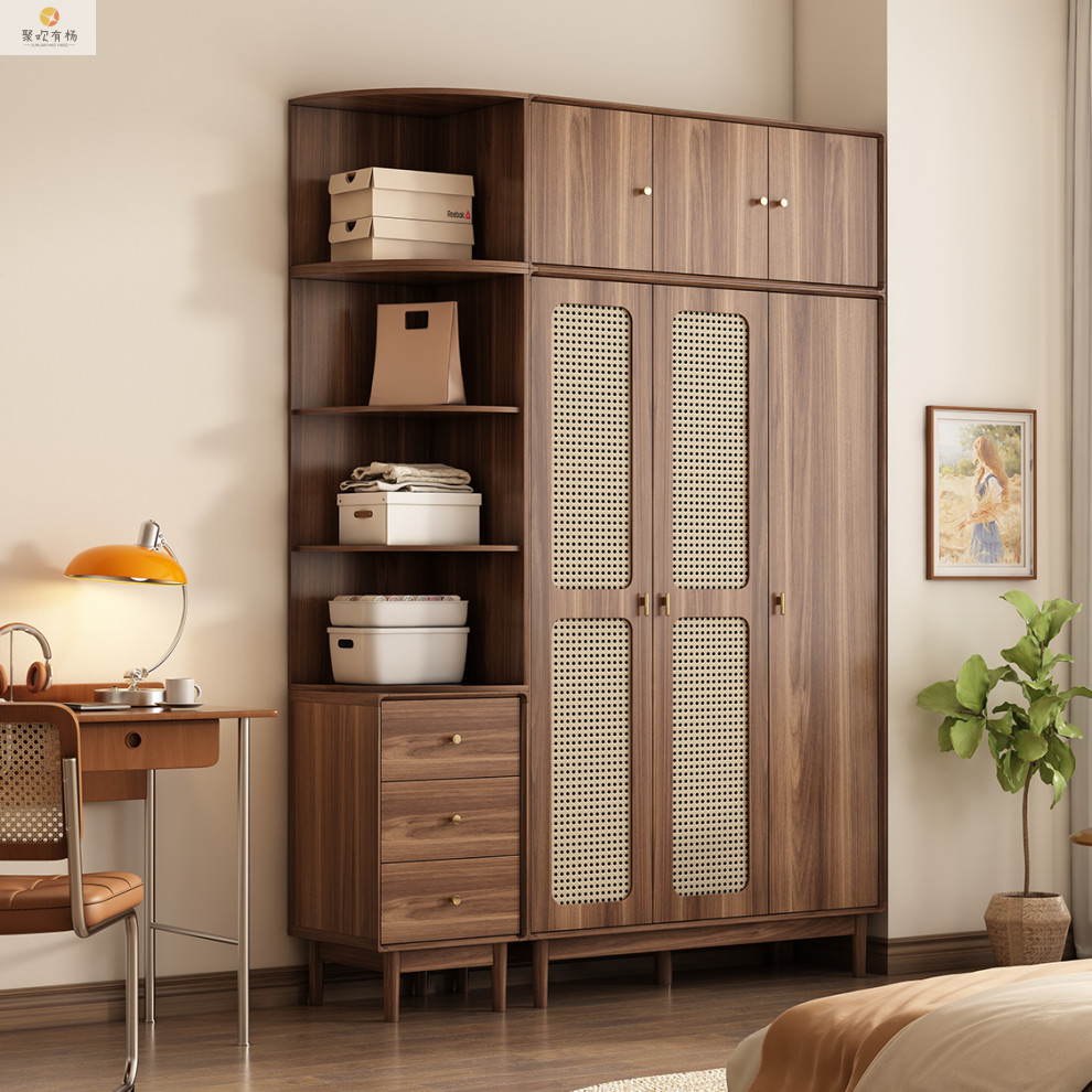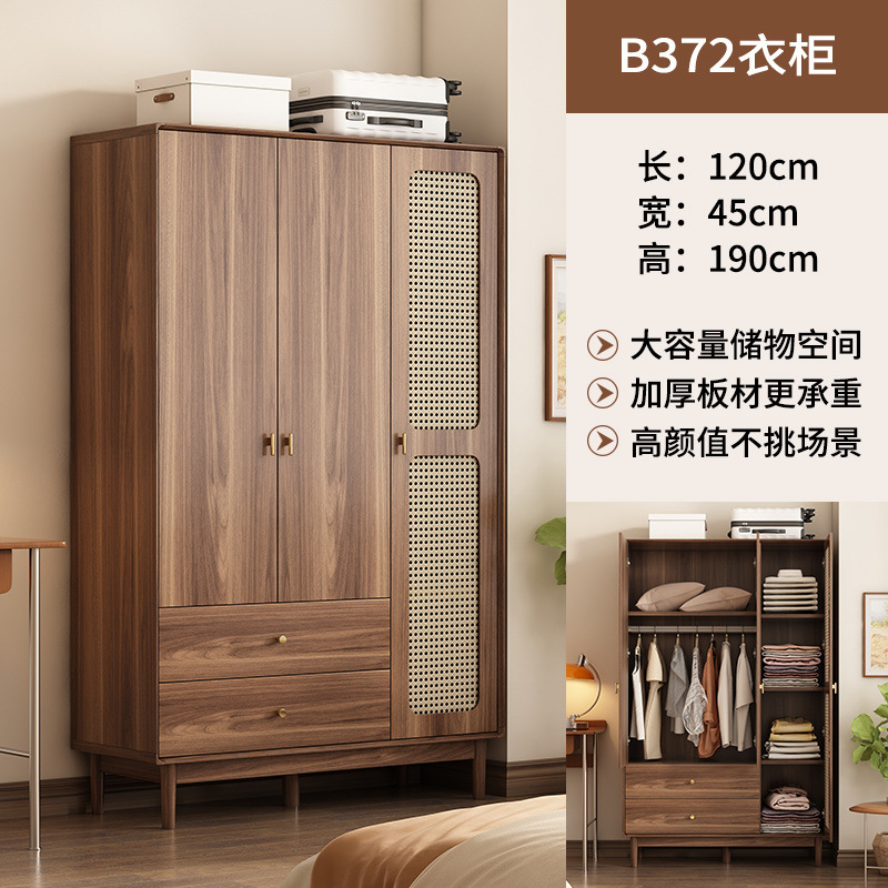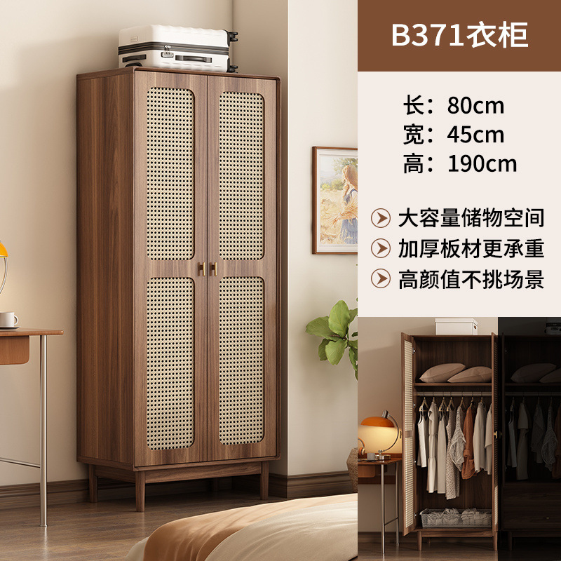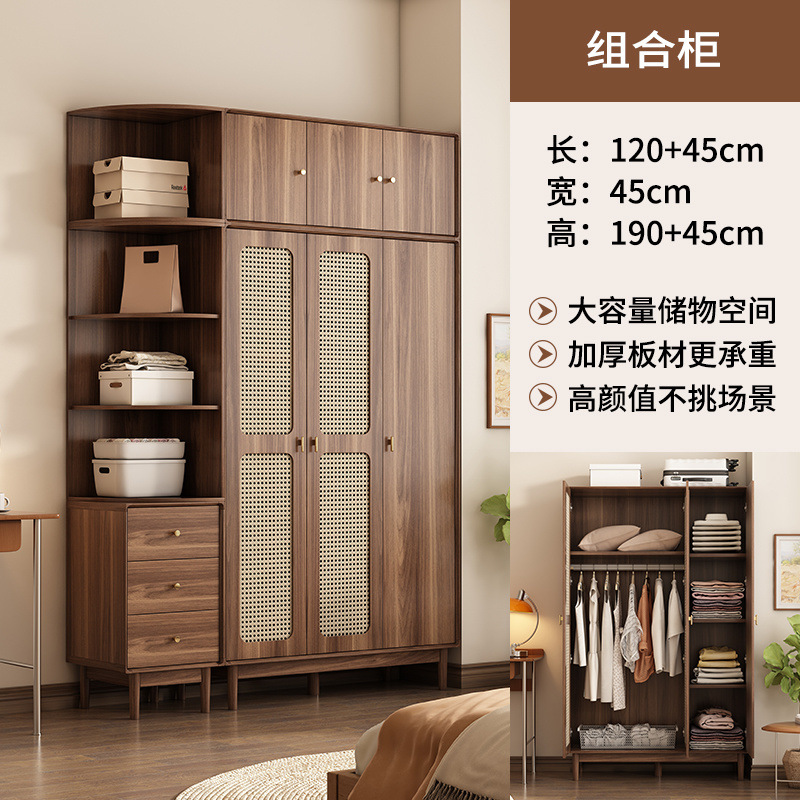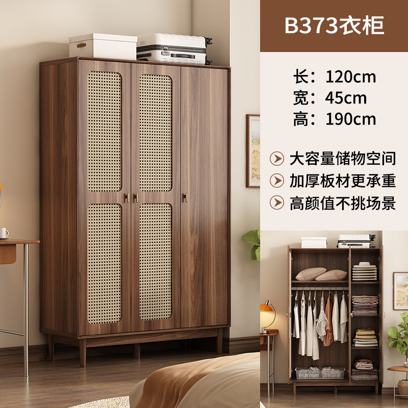 단단한 나무 등나무 문 옷장 새로운 중국식 침실 옷장 가정용 저장 캐비닛 작은 아파트 다층 대용량 캐비닛