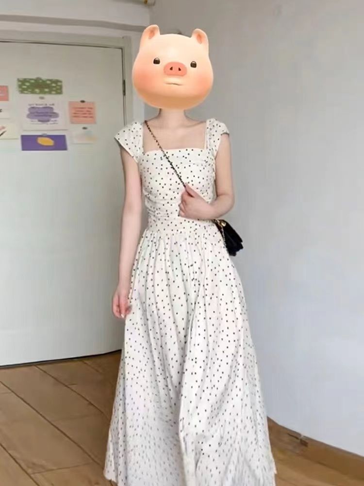 프랑스 스타일 작은 비행 소매 광장 칼라 폴로 도트 원피스 어린이 여름 2025 새로운 부드러운 스타일 디자인 우아한 긴 원피스스토어 가기