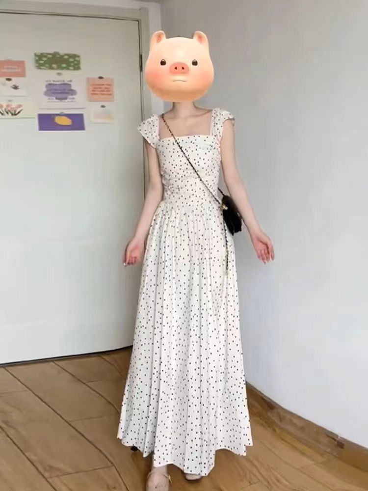 프랑스 스타일 작은 비행 소매 광장 칼라 폴로 도트 원피스 어린이 여름 2025 새로운 부드러운 스타일 디자인 우아한 긴 원피스