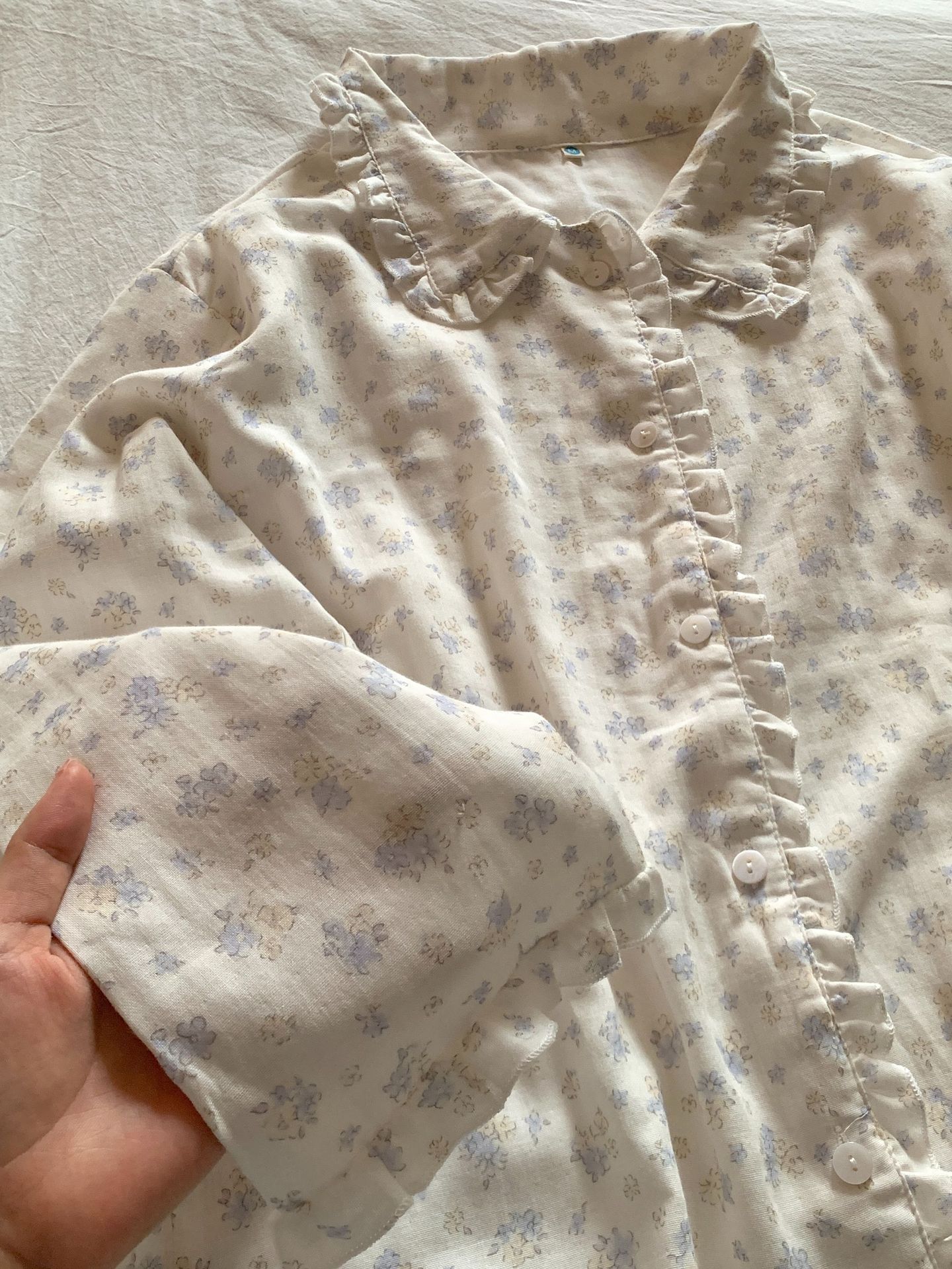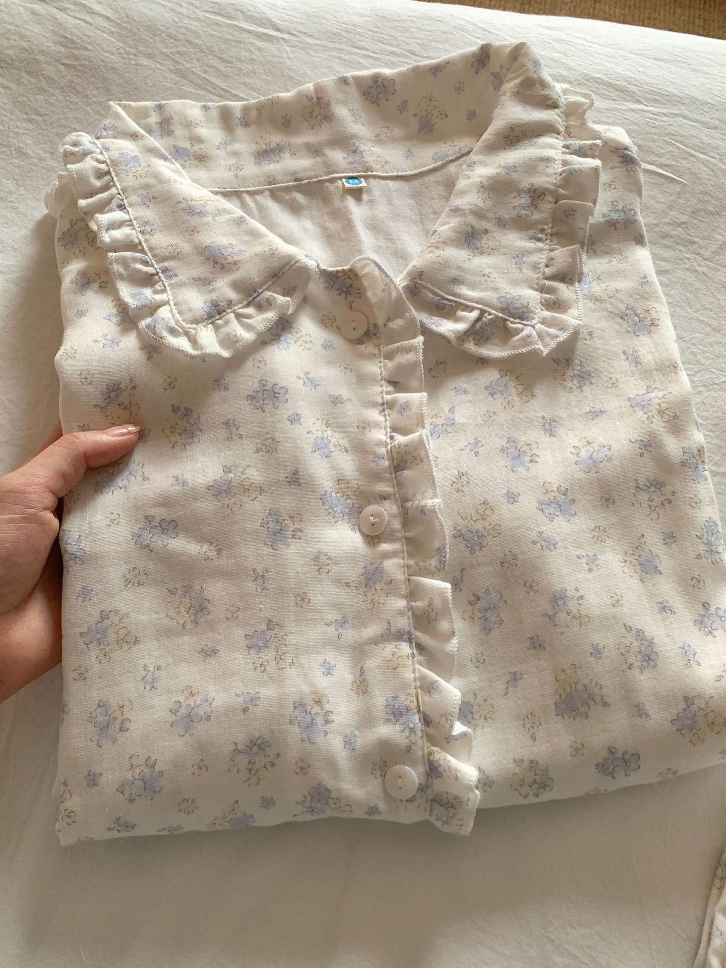 • 밀크 블루 한국 꽃무늬 레이스 슈트